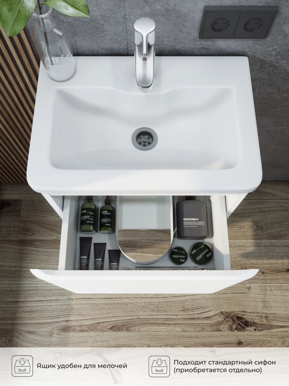 Подвесная тумба под раковину в ванную из коллекции Roberto - это сочетание современной стилистики и богатого функционала. Тумба для ванны изготовлена из прочного МДФ, поэтому выдерживает высокие эксплуатационные нагрузки и обеспечивает дополнительную защиту тумбы под раковину от влаги и перепадов температуры. Качественная фурнитура с доводчиками обеспечивает легкое открывание и плавное закрывание ящиков. Вырез под сифон универсальный, для любого типа. Благодаря своей конструкции тумба обеспечивает удобный доступ к раковине и позволяет скрыть коммуникации. Тумба под раковину в ванную оснащена удобным ящиком для хранения, что позволяет разместить всё необходимое под рукой. Ручки интегрированы в фасад, что исключает возможность случайного удара о фурнитуру. Для точного выбора тумбы под раковину в ванную комнату рекомендуем обратиться к схеме замеров, которая находится на фото в карточке товара, размеры изделия могут отличаться +/-1 см в связи со спецификой производства. Тумба для ванной доставляется в предварительно собранном виде, надежно упакована.