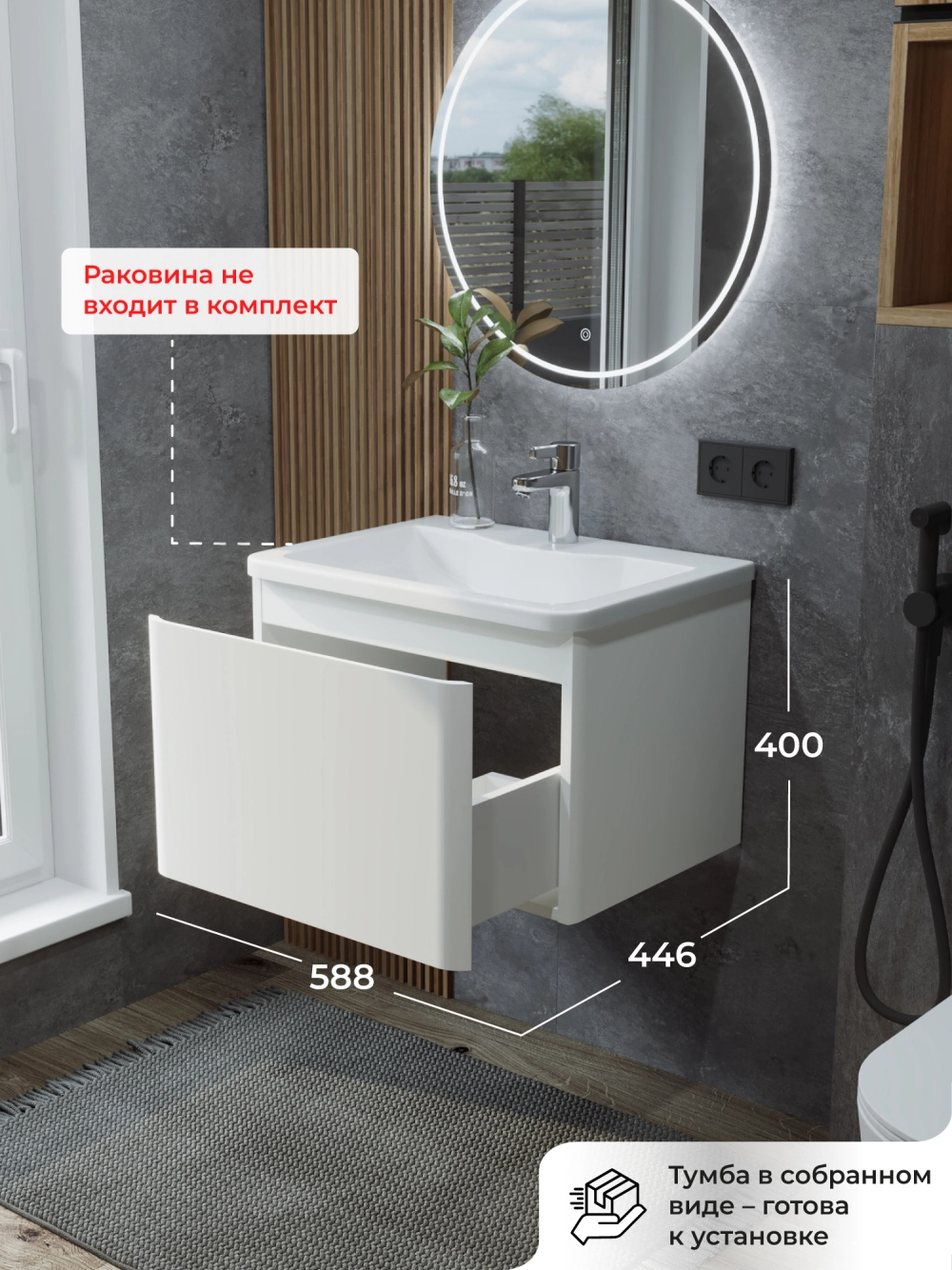 Тумба под раковину подвесная Итана Roberto 60 с выдвижным ящиком Белый Глянец