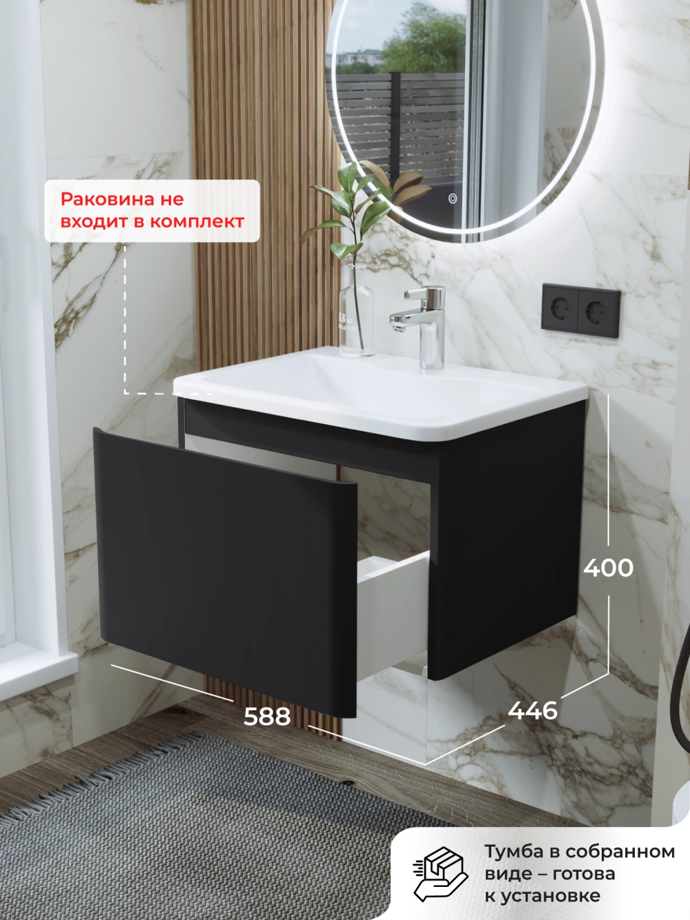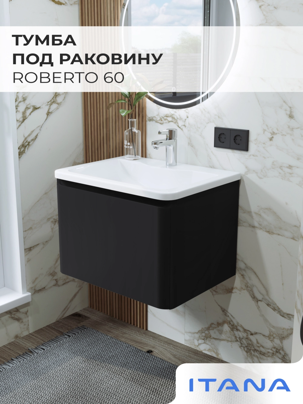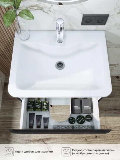 Тумба под раковину подвесная Итана Roberto 60 с выдвижным ящиком Черный Софт