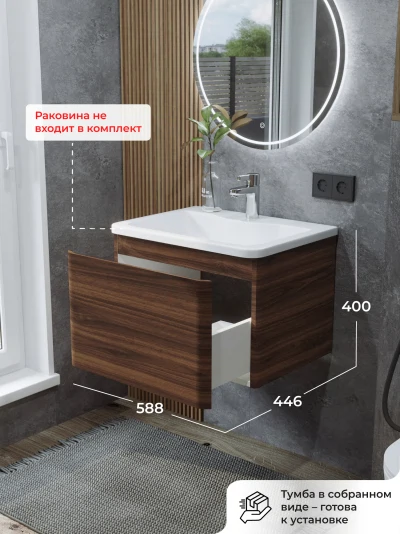 Тумба под раковину подвесная Итана Roberto 60 с выдвижным ящиком Орех Пекан Шоколад Стронг