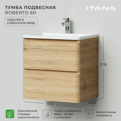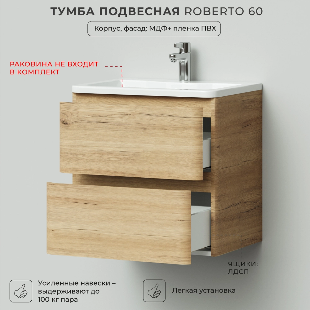 Тумба под раковину подвесная Итана Roberto 60 с выдвижными ящиками Дуб Мавелла Голд