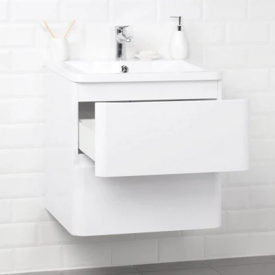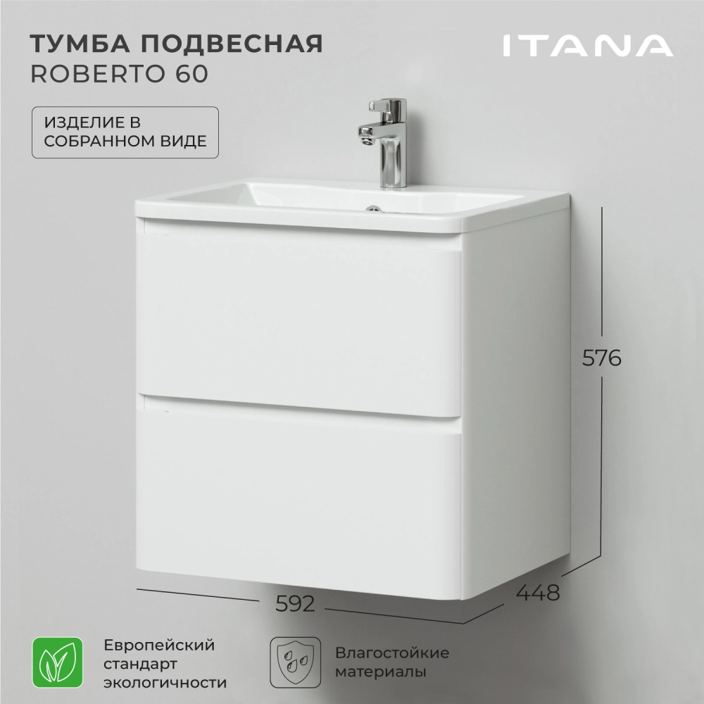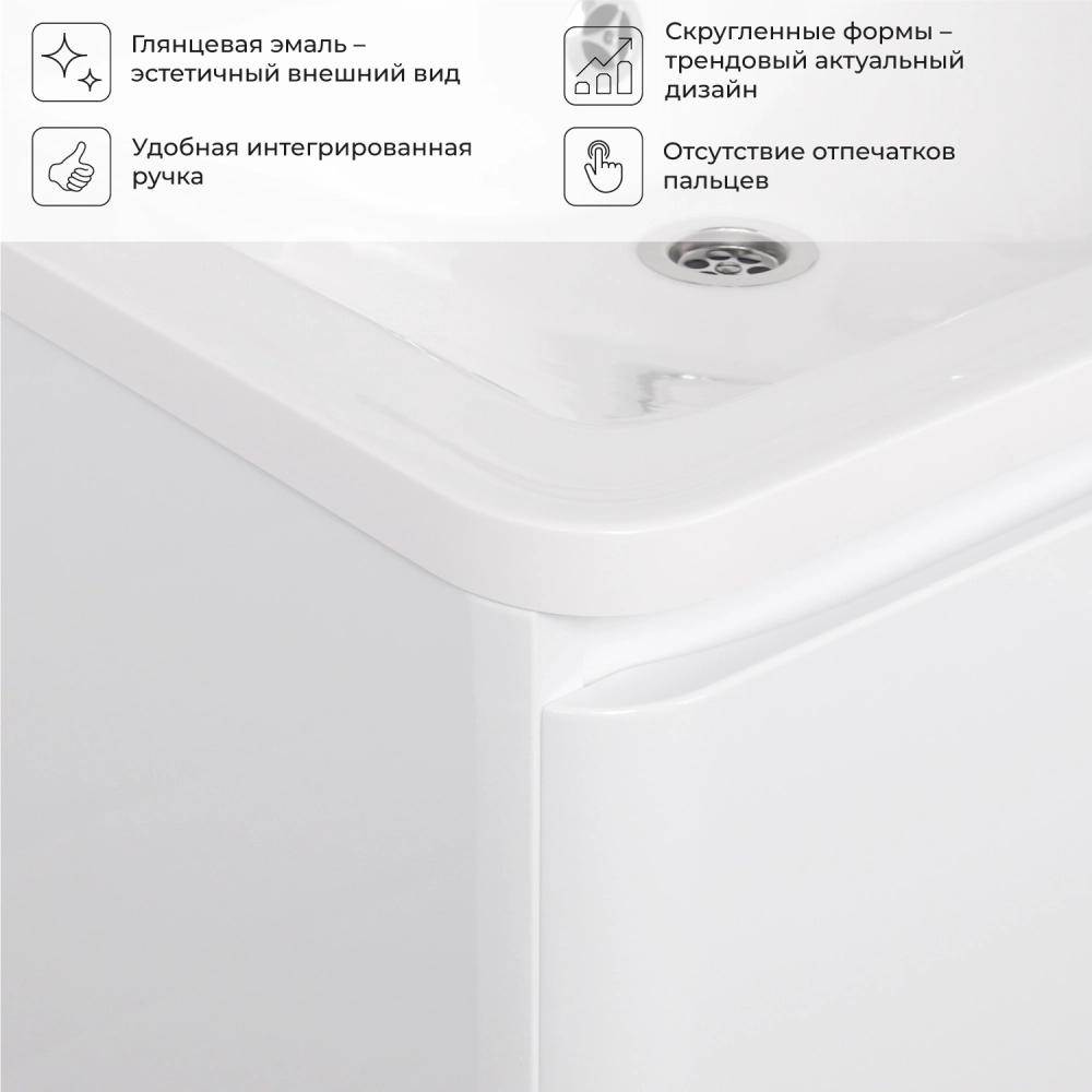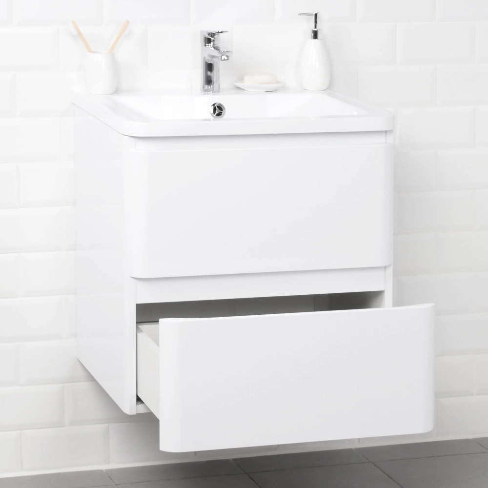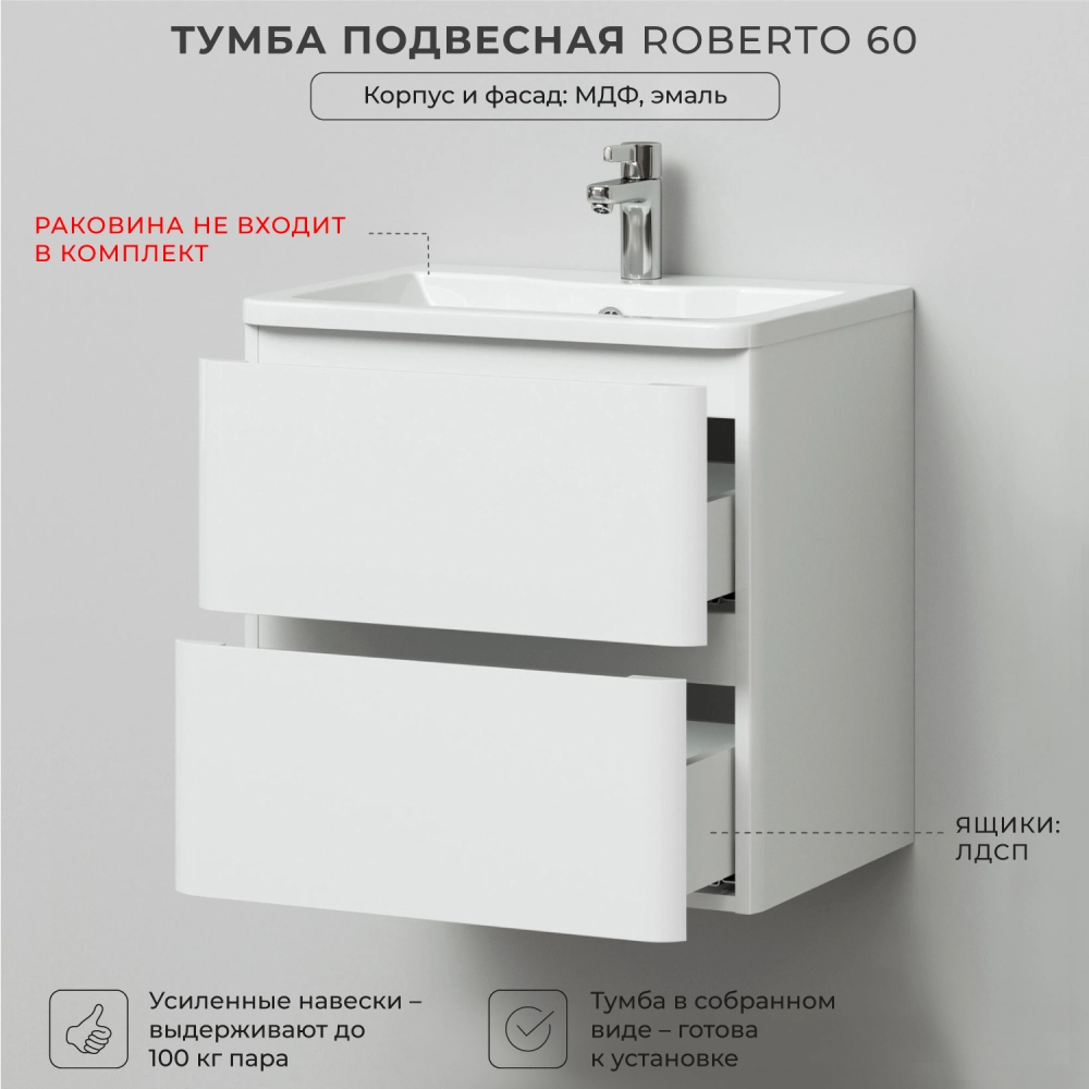 Тумба под раковину подвесная Итана Roberto 60 с выдвижными ящиками Эмаль Белый Глянец