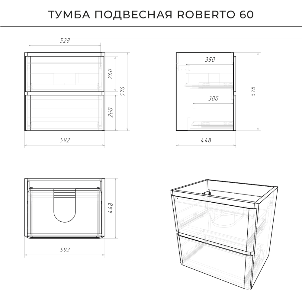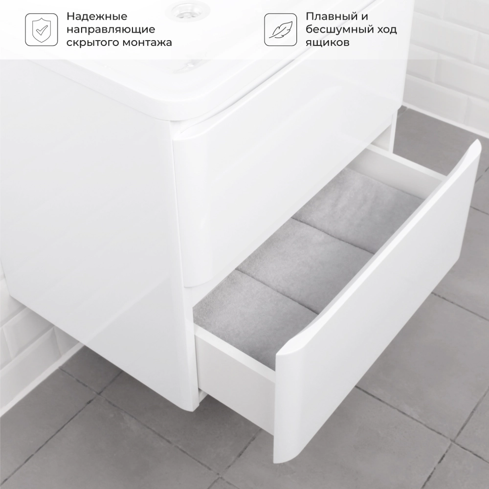 Подвесная тумба под раковину в ванную из коллекции Roberto - это сочетание современной стилистики и богатого функционала. Тумба для ванны изготовлена из прочного МДФ, поэтому выдерживает высокие эксплуатационные нагрузки и обеспечивает дополнительную защиту тумбы под раковину от влаги и перепадов температуры. Качественная фурнитура с доводчиками обеспечивает легкое открывание и плавное закрывание ящиков. Вырез под сифон универсальный, для любого типа. Благодаря своей конструкции тумба обеспечивает удобный доступ к раковине и позволяет скрыть коммуникации. Тумба под раковину в ванную оснащена двумя удобными ящиками для хранения, что позволяет разместить всё необходимое под рукой. Ручки интегрированы в фасад, что исключает возможность случайного удара о фурнитуру. Для точного выбора тумбы под раковину в ванную комнату рекомендуем обратиться к схеме замеров, которая находится на фото в карточке товара, размеры изделия могут отличаться +/-1 см в связи со спецификой производства. Тумба для ванной доставляется в предварительно собранном виде, надежно упакована.