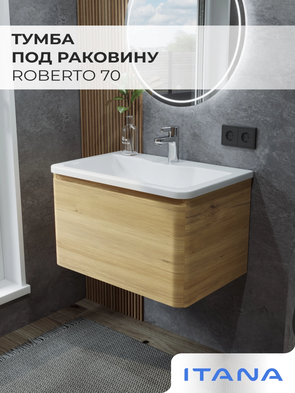Тумба под раковину подвесная Итана Roberto 70 с выдвижным ящиком Дуб Мавелла Голд