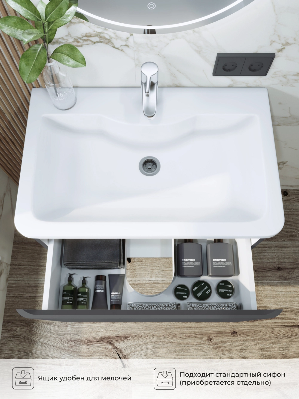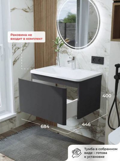 Тумба под раковину подвесная Итана Roberto 70 с выдвижным ящиком Графит