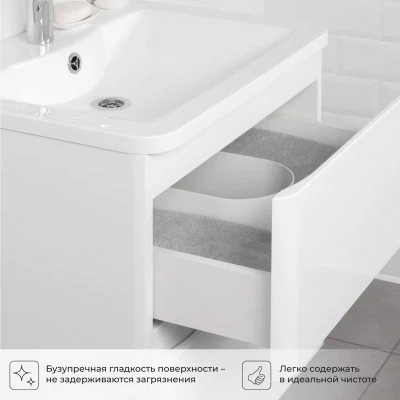 Подвесная тумба под раковину в ванную из коллекции Roberto - это сочетание современной стилистики и богатого функционала. Тумба для ванны изготовлена из прочного МДФ, поэтому выдерживает высокие эксплуатационные нагрузк и обеспечивает дополнительную защиту тумбы под раковину от влаги и перепадов температуры. Качественная фурнитура с доводчиками обеспечивает легкое открывание и плавное закрывание ящиков. Вырез под сифон универсальный, для любого типа. Благодаря своей конструкции тумба обеспечивает удобный доступ к раковине и позволяет скрыть коммуникации. Тумба под раковину в ванную оснащена удобным ящиком для хранения, что позволяет разместить всё необходимое под рукой. Ручки интегрированы в фасад, что исключает возможность случайного удара о фурнитуру. Для точного выбора тумбы под раковину в ванную комнату рекомендуем обратиться к схеме замеров, которая находится на фото в карточке товара, размеры изделия могут отличаться +/-1 см в связи со спецификой производства. Тумба для ванной доставляется в предварительно собранном виде, надежно упакована.
