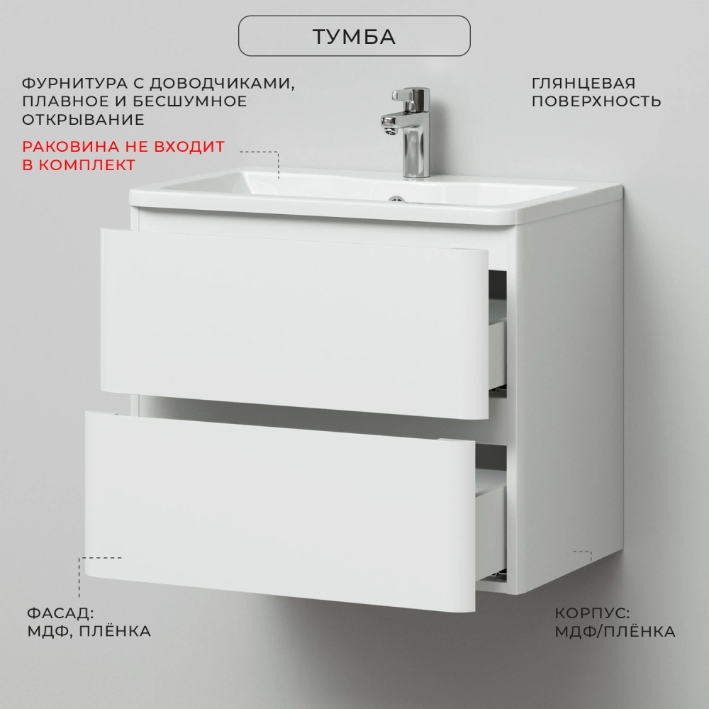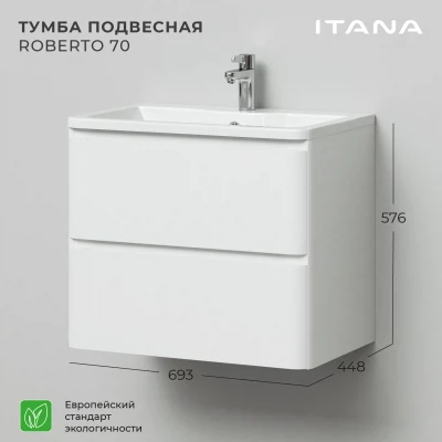 Тумба под раковину подвесная Итана Roberto 70 с выдвижными ящиками Белый Глянец