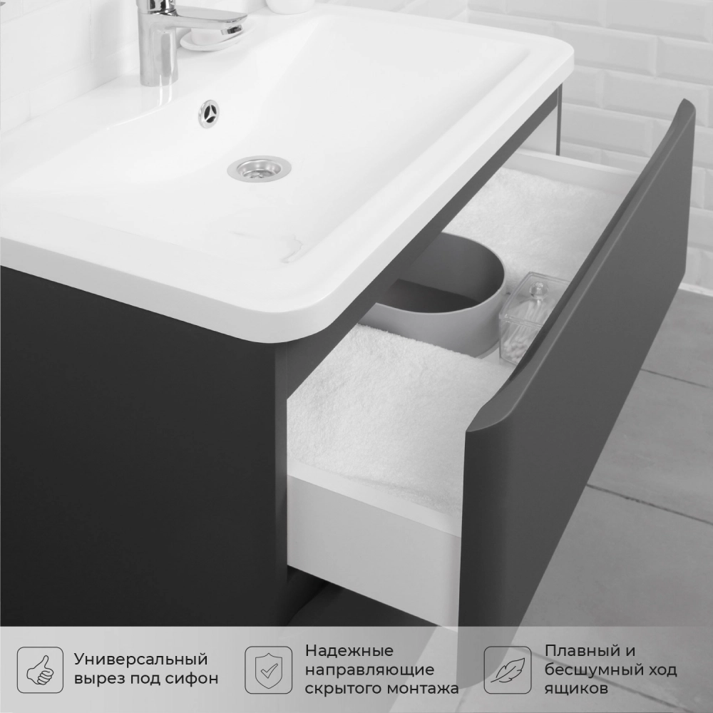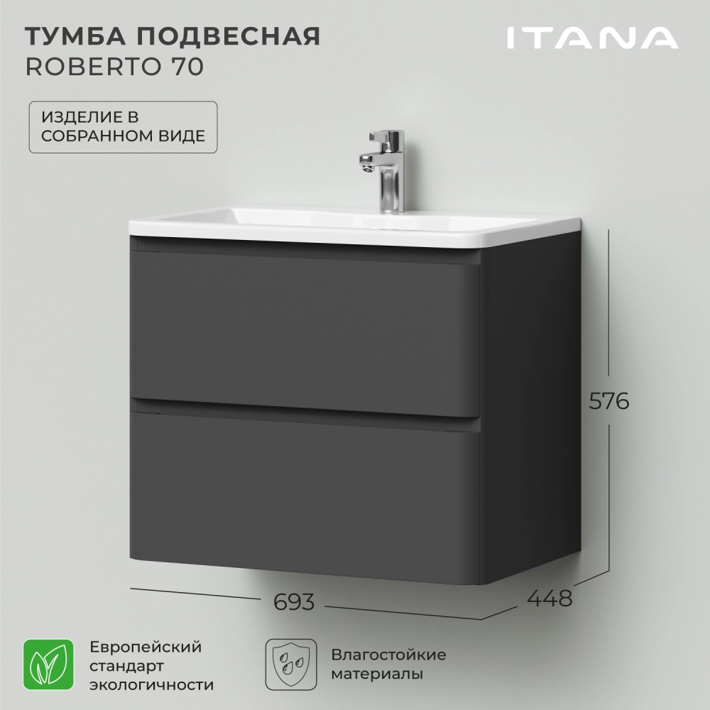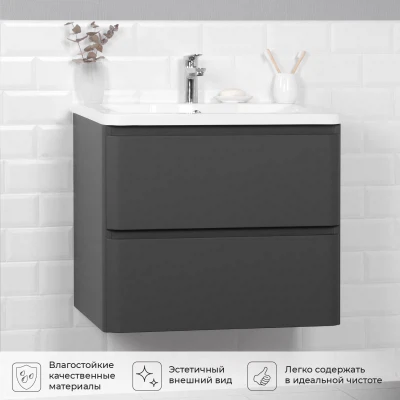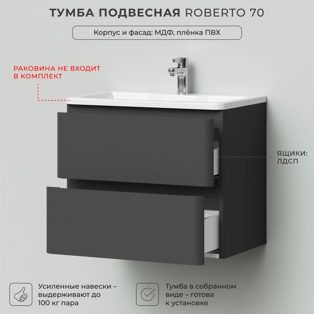 Тумба под раковину подвесная Итана Roberto 70 с выдвижными ящиками Графит