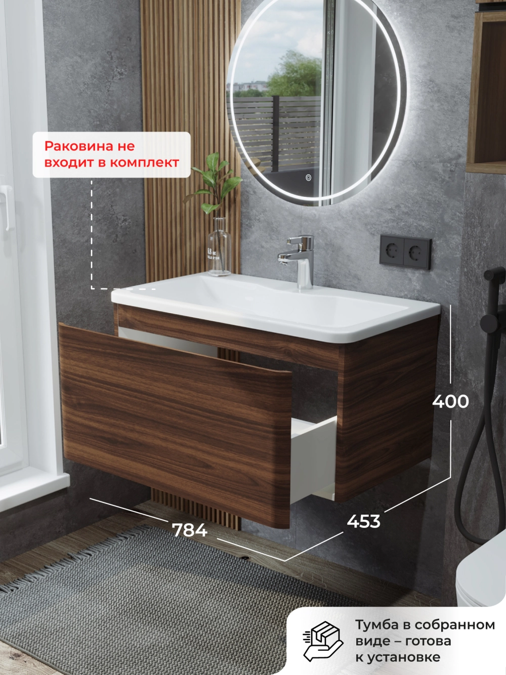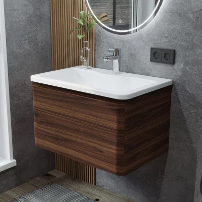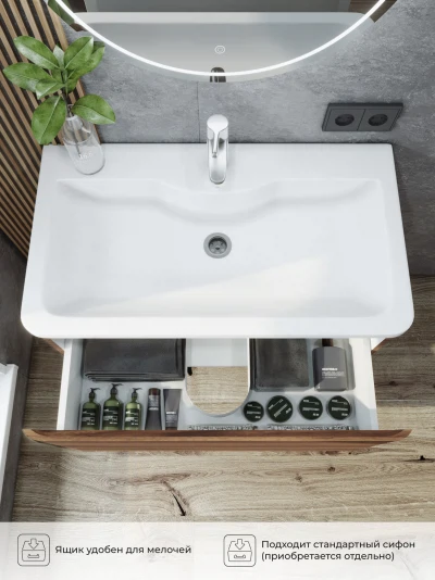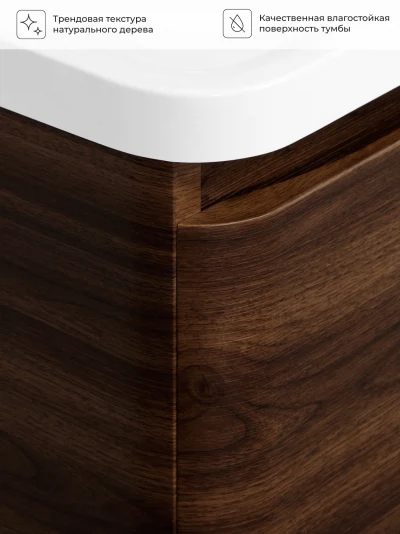 Тумба под раковину подвесная Итана Roberto 80 с выдвижным ящиком Орех Пекан Шоколад Стронг