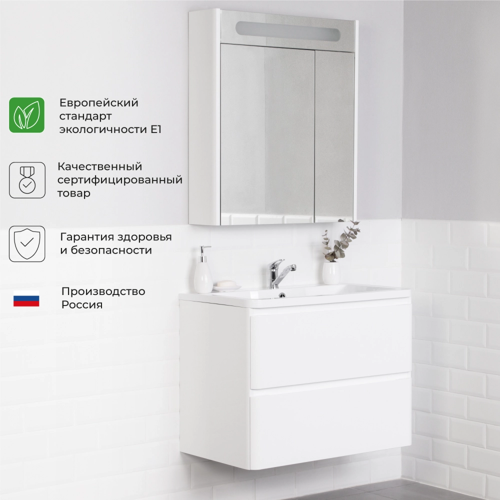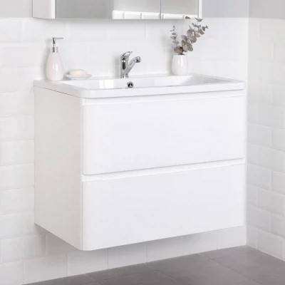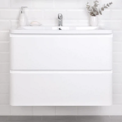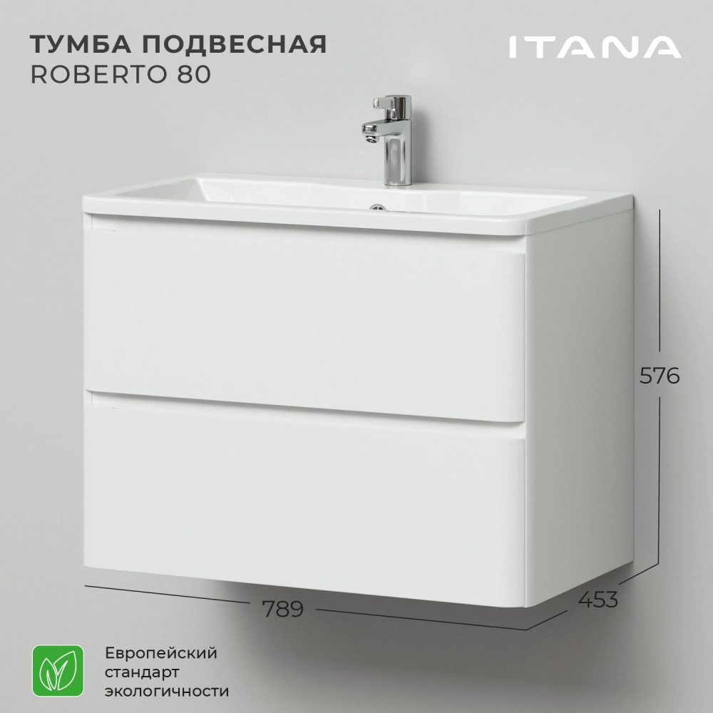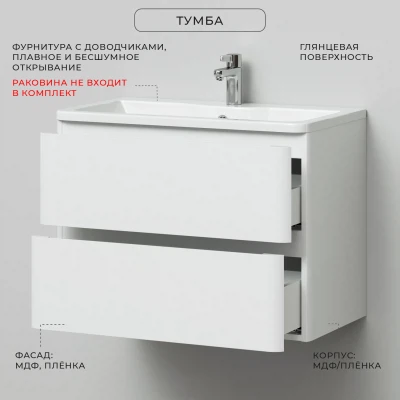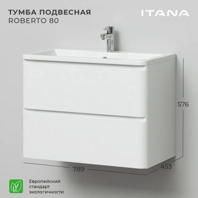 Тумба под раковину подвесная Итана Roberto 80 с выдвижными ящиками Белый Глянец