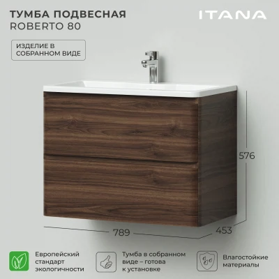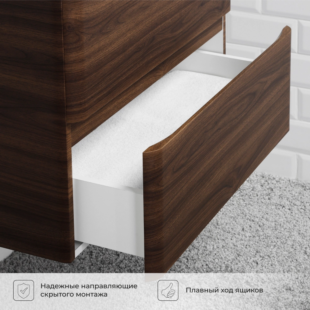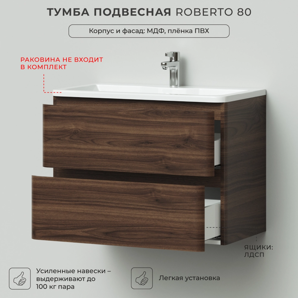 Тумба под раковину подвесная Итана Roberto 80 с выдвижными ящиками Орех Пекан шоколад стронг