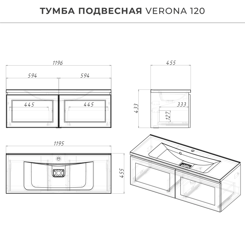 Подвесная тумба под раковину из коллекции Verona станет настоящим украшением ванной комнаты в современном скандинавском стиле. Навесной способ установки тумбы в ванную дает возможность не только визуально увеличить пространство, но и обеспечивает быстрый и удобный доступ для уборки. Размеры подвесной тумбы под раковину 1193х450х400 - идеальный выбор для ванной комнаты или туалета. Тумба для ванны изготовлена из прочного МДФ, поэтому выдерживает высокие эксплуатационные нагрузки. Качественная фурнитура с доводчиками обеспечивает легкое открывание и плавное закрывание ящика. Вырез под сифон универсальный, для любого типа. Благодаря своей конструкции тумба в ванную обеспечивает удобный доступ к раковине и позволяет скрыть коммуникации. Тумба под раковину в ванную оснащена удобным ящиком для хранения, что позволяет разместить всё необходимое под рукой. Ручки интегрированы в фасад дверки шкафчика, что исключает возможность случайного удара о фурнитуру. Для точного выбора подвесной тумбы под раковну в ванную комнату рекомендуем обратиться к схеме замеров, которая находится на фото в карточке товара, размеры изделия могут отличаться +/-1 см в связи со спецификой производства. Тумба для ванной доставляется в предварительно собранном виде, надежно упакована.