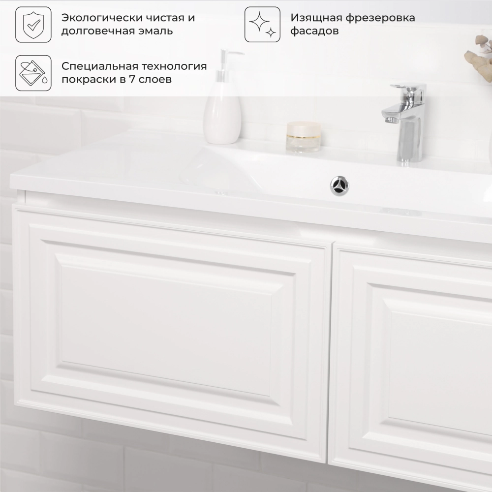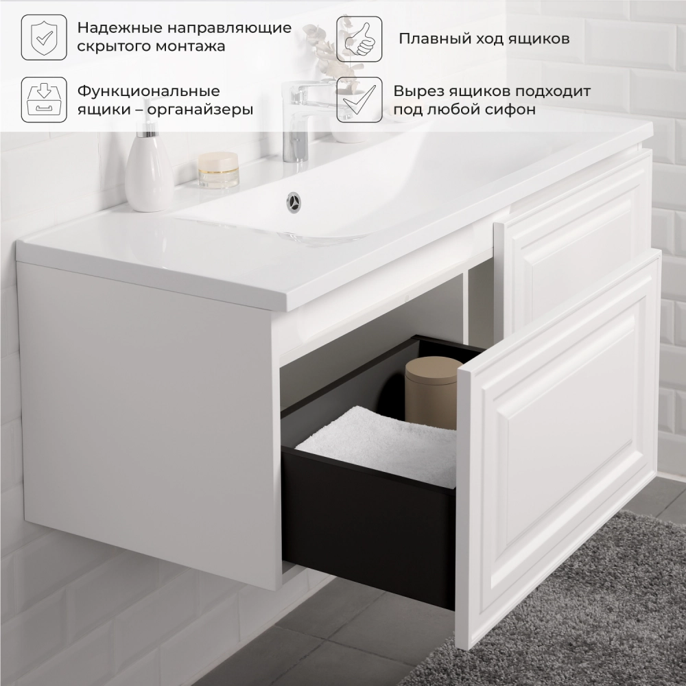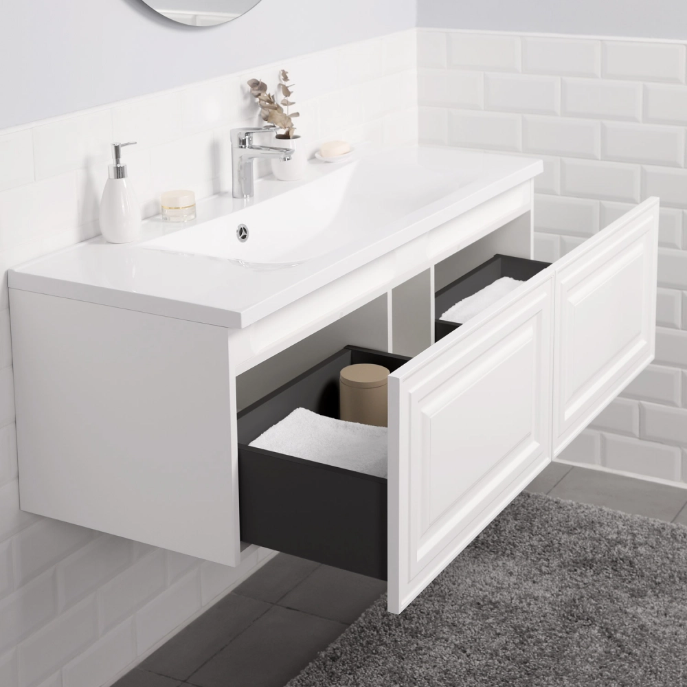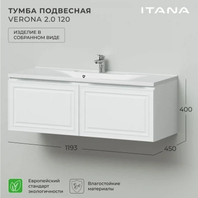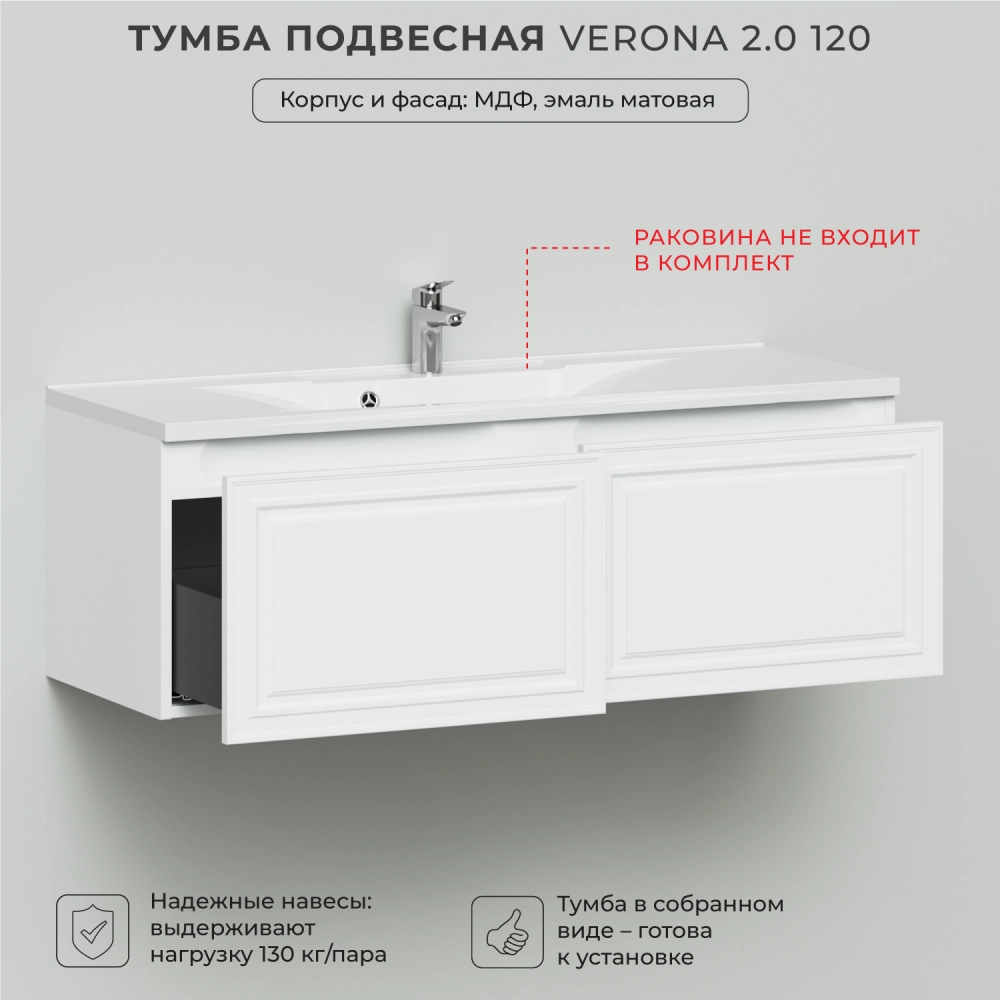 Тумба под раковину подвесная Итана Verona 2.0 120 с выдвижными ящиками Эмаль Белый матовый