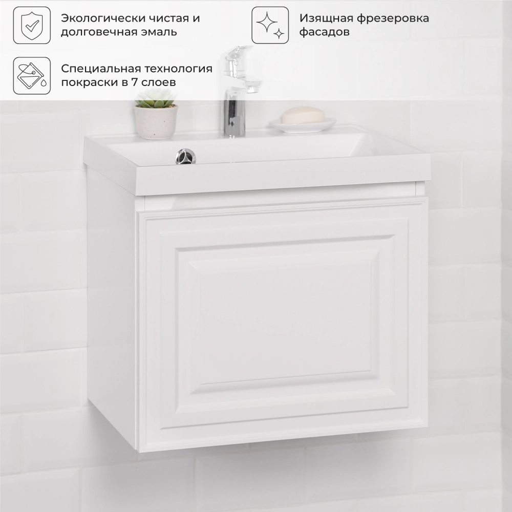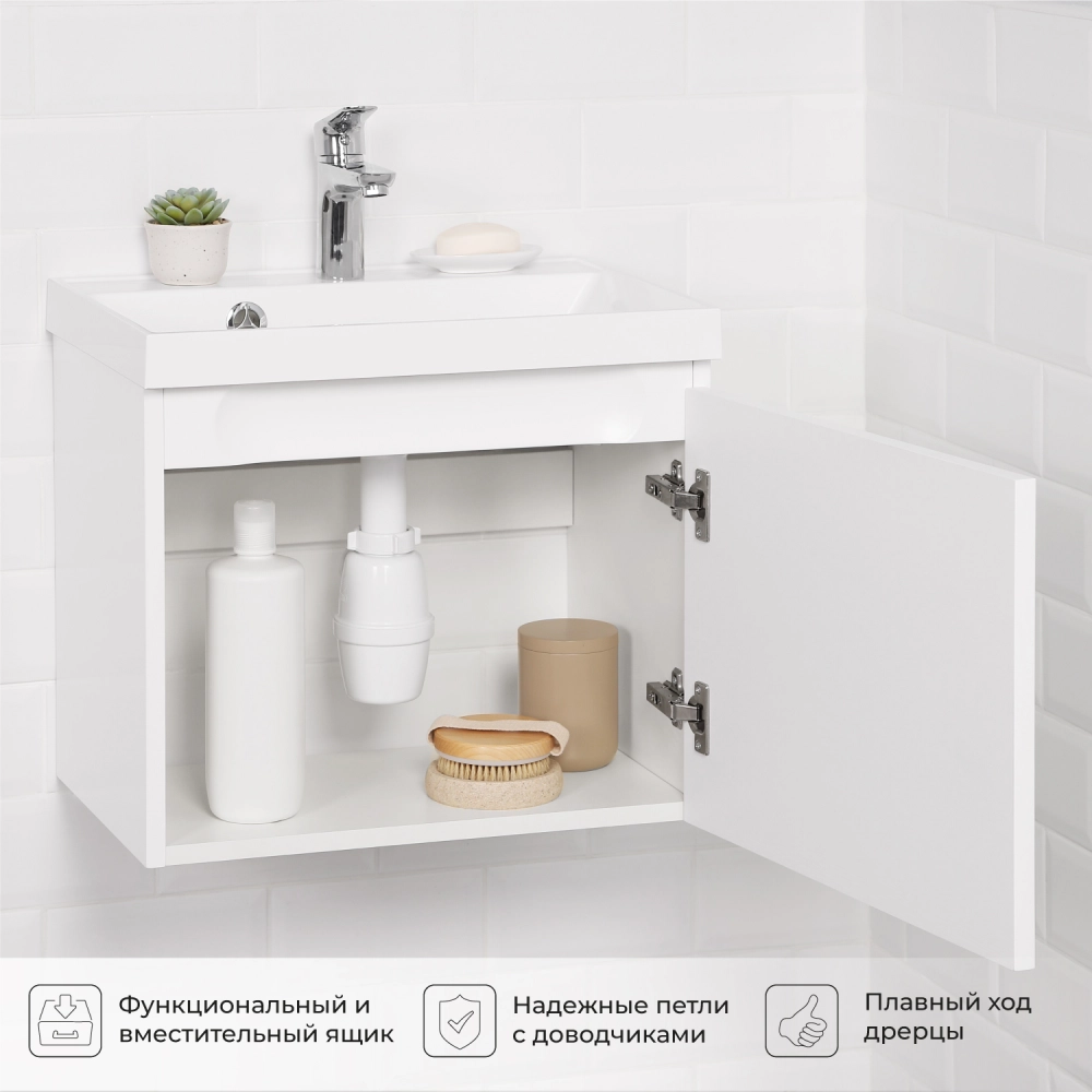 Тумба под раковину подвесная Итана Verona 2.0 50 с распашной дверцей Эмаль Белый матовый