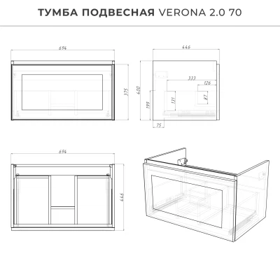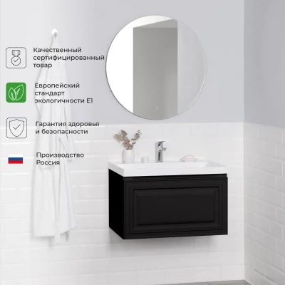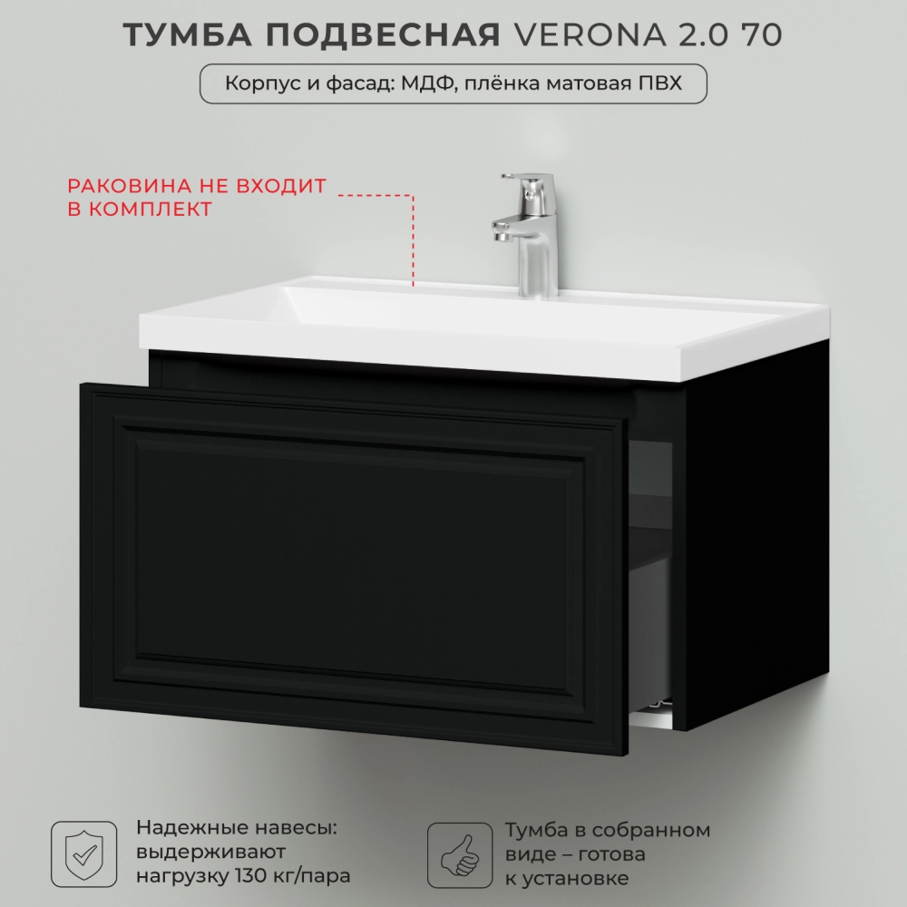 Тумба под раковину подвесная Итана Verona 2.0 70 с выдвижным ящиком Черный софт