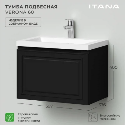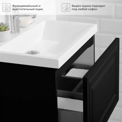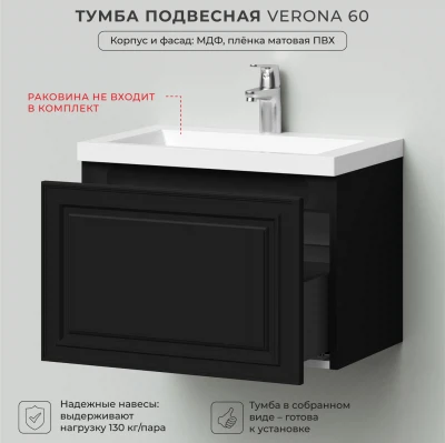 Тумба под раковину подвесная Итана Verona 60 с выдвижным ящиком Черный софт