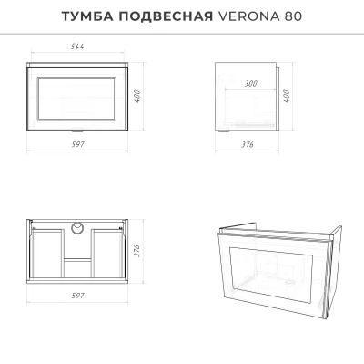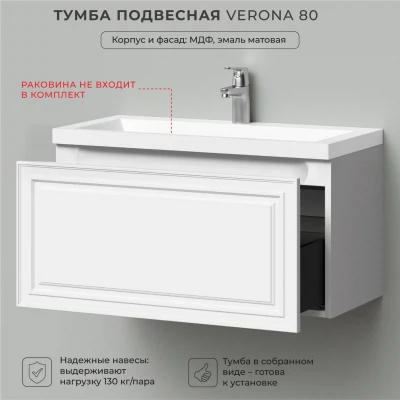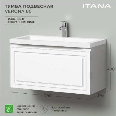 Тумба под раковину подвесная Итана Verona 80 790х376х400 Эмаль белый матовый