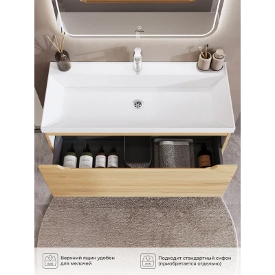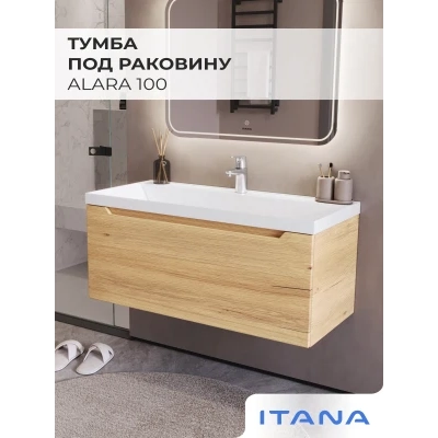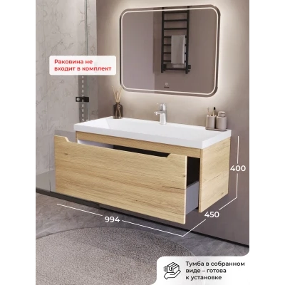 Тумба под раковину подвесная Итана Alara 100 с выдвижным ящиком Дуб Мавелла Голд