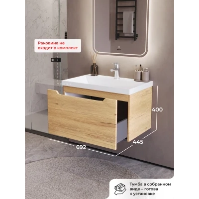 Тумба под раковину подвесная Итана Alara 70 с выдвижным ящиком Дуб Мавелла Голд