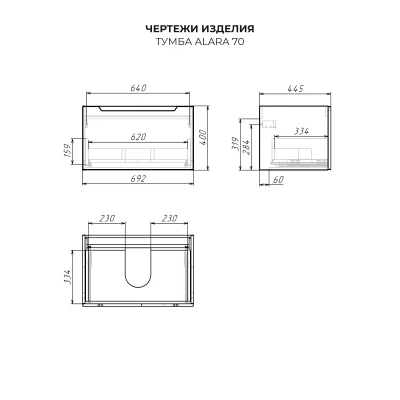 Тумба под раковину в ванную Итана из коллекции Alara. Тумба в ванную отличается элегантным дизайном и качественным исполнением, прекрасно сочетая функциональность и эстетическую привлекательность. Размеры подвесной тумбы под раковину 692*445*400 - идеальный выбор для ванной комнаты или туалета. Подвесная конструкция тумбы под раковину позволяет сэкономить место на полу и визуально расширяет пространство. Тумба под раковину в ванную подвесная выполнена из МФД, что гарантирует долговечность эксплуатации и износостойкость. Качественная фурнитура с доводчиками обеспечивает легкое открывание и плавное закрывание ящика. Тумба под раковину с одним ящиком, в нем можно рационально распределить и разместить все необходимые вещи для ванной комнаты. Для точного выбора тумбы рекомендуем обратиться к схеме замеров, которая находится на фото в карточке товара. Размеры изделия могут отличаться +/-1 см в связи со спецификой производства. Подвесная тумба под раковину приходит в надежной упаковке и в собранном виде.