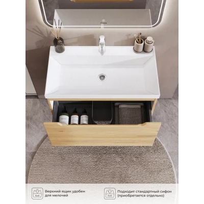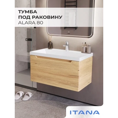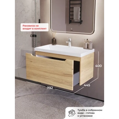 Тумба под раковину подвесная Итана Alara 80 с выдвижным ящиком Дуб Мавелла Голд