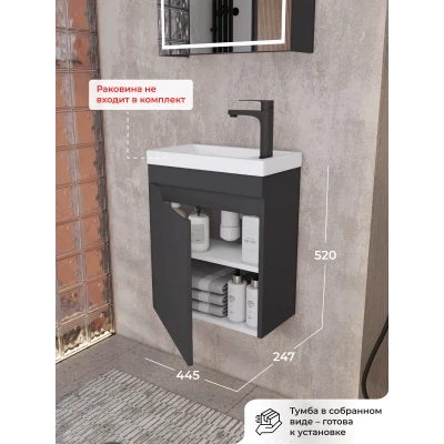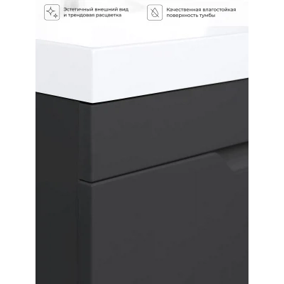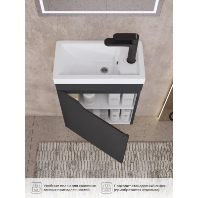 Тумба под раковину подвесная Итана Alexa 45 с распашной дверцей левая узкая Графит