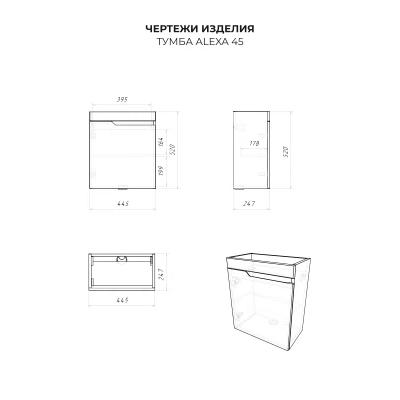 Тумба под раковину в ванную Итана из коллекции Alexa. Тумба в ванную отличается элегантным дизайном и качественным исполнением, прекрасно сочетая функциональность и эстетическую привлекательность. Размеры подвесной тумбы под раковину 445*247*520 - идеальный выбор для ванной комнаты или туалета. Подвесная конструкция тумбы под раковину позволяет сэкономить место на полу и визуально расширяет пространство. Тумба под раковину в ванную подвесная выполнена из МФД, что гарантирует долговечность эксплуатации и износостойкость. Качественная фурнитура с доводчиками обеспечивает легкое открывание и плавное закрывание. Ручки интегрированы в фасад, что исключает возможность случайного удара о фурнитуру. Тумба под раковину с полками внутри, где можно рационально распределить и разместить все необходимые вещи для ванной комнаты. Для точного выбора тумбы рекомендуем обратиться к схеме замеров, которая находится на фото в карточке товара. Размеры изделия могут отличаться +/-1 см в связи со спецификой производства. Подвесная тумба под раковину приходит в надежной упаковке и в собранном виде.