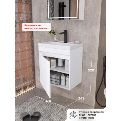 Тумба под раковину в ванную Итана из коллекции Alexa. Тумба в ванную отличается элегантным дизайном и качественным исполнением, прекрасно сочетая функциональность и эстетическую привлекательность. Размеры подвесной тумбы под раковину 491*342*520 - идеальный выбор для ванной комнаты или туалета. Подвесная конструкция тумбы под раковину позволяет сэкономить место на полу и визуально расширяет пространство. Тумба под раковину в ванную подвесная выполнена из МФД, что гарантирует долговечность эксплуатации и износостойкость. Качественная фурнитура с доводчиками обеспечивает легкое открывание и плавное закрывание. Ручки интегрированы в фасад, что исключает возможность случайного удара о фурнитуру. Тумба под раковину с полками внутри, где можно рационально распределить и разместить все необходимые вещи для ванной комнаты. Для точного выбора тумбы рекомендуем обратиться к схеме замеров, которая находится на фото в карточке товара. Размеры изделия могут отличаться +/-1 см в связи со спецификой производства. Подвесная тумба под раковину приходит в надежной упаковке и в собранном виде.