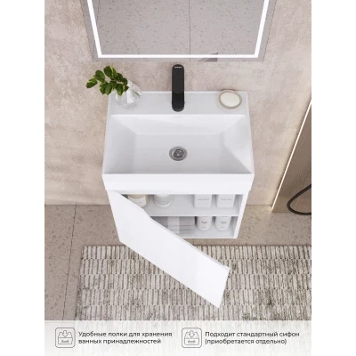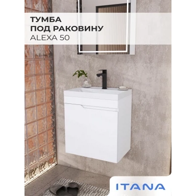Тумба под раковину подвесная Итана Alexa 50 с распашной дверцей левый Белый глянец