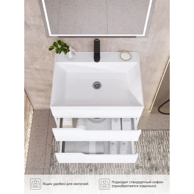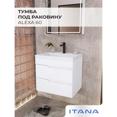 Тумба под раковину подвесная Итана Alexa 60 с выдвижными ящиками Белый глянец
