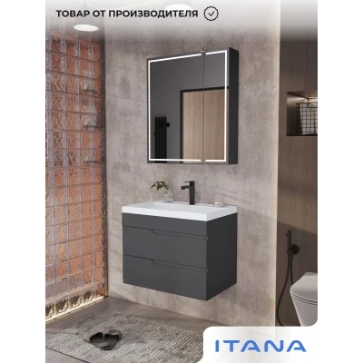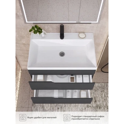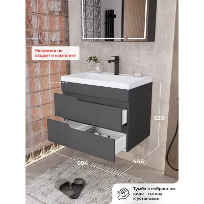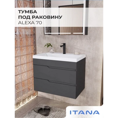 Тумба под раковину подвесная Итана Alexa 70 с выдвижными ящиками Графит
