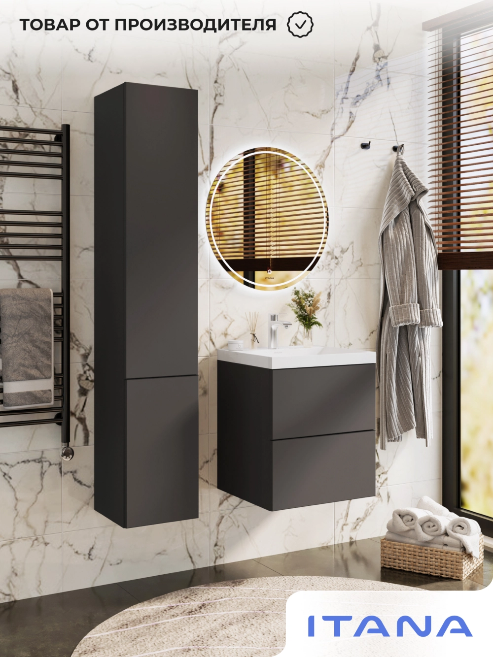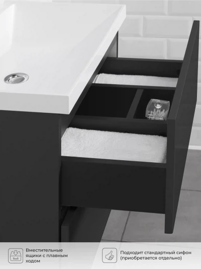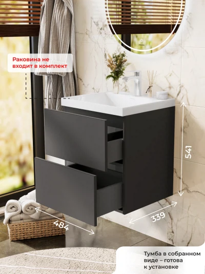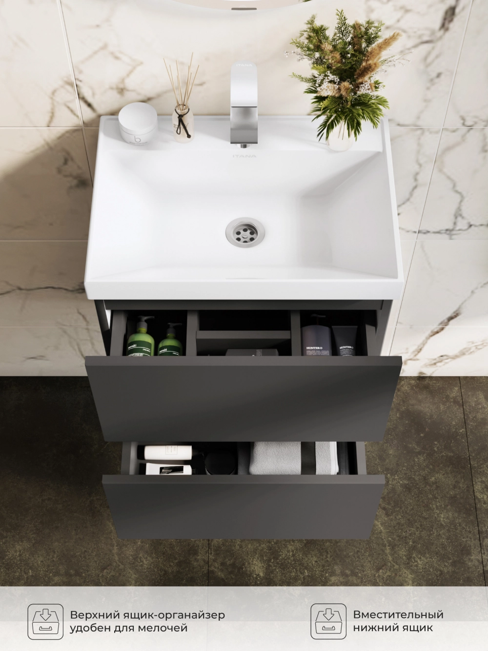 Тумба под раковину подвесная Итана Icon 50 с выдвижными ящиками Графит