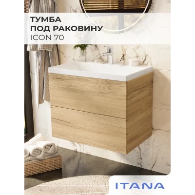 Тумба под раковину подвесная Итана Icon 70 с выдвижными ящиками Дуб Мавелла Голд