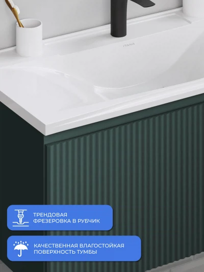 Подвесная тумба под раковину Итана Kate 100 станет идеальным дополнением для вашей ванной комнаты, сочетая в себе стильный дизайн и функциональность. Коллекция Kate - воплотила в себе тренд на фактурные фасады. Идеальный "рубчик" - простое и стильное дизайнерское решение для декорирования фасадов - эта мебель бесспорно станет украшением современной ванной комнаты. Элегантная подвесная конструкция позволяет максимально эффективно использовать пространство, создавая ощущение легкости и визуальной свободы в интерьере. Тумба изготовлена из высококачественных материалов, гарантируя долговечность и надежность эксплуатации. Удобные фрезерованные ручки, качественная фурнитура с доводчиками, вместительность - мы продумали все, чтобы тумба под раковину была не просто красивой, но еще и функциональной, приятной в использовании. Ее конструкция позволяет легко поддерживать порядок в ванной, ведь все мелочи будут аккуратно убраны. Стильный декор тумбы добавляет изюминку в общий дизайн, вписываясь в современные и классические интерьеры. Удобные выдвижные ящики обеспечивают простоту доступа к содержимому тумбы. Подвесная тумба для ванной Итана Kate 100 — это также безопасность и удобство в уборке, так как свободное пространство под ней позволяет легко очистить пол. Безупречное сочетание раковины с тумбой подчеркивает общий стиль вашей ванной комнаты, делая ее уютной и функциональной. Для точного выбора тумбочки в ванную комнату рекомендуем обратиться к схеме замеров, которая находится на фото в карточке товара, размеры изделия могут отличаться +/-1 см в связи со спецификой производства. Тумба для ванной доставляется в предварительно собранном виде, надежно упакована.