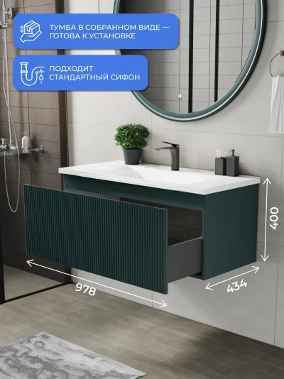 Тумба под раковину подвесная Итана Kate 100 с выдвижным ящиком Велютто Авокадо