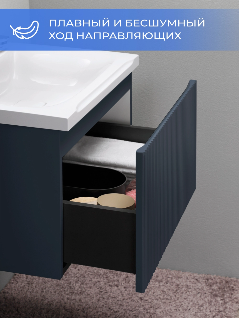 Подвесная тумба под раковину Итана Kate 65 станет идеальным дополнением для вашей ванной комнаты, сочетая в себе стильный дизайн и функциональность. Коллекция Kate - воплотила в себе тренд на фактурные фасады. Идеальный "рубчик" - простое и стильное дизайнерское решение для декорирования фасадов - эта мебель бесспорно станет украшением современной ванной комнаты. Элегантная подвесная конструкция позволяет максимально эффективно использовать пространство, создавая ощущение легкости и визуальной свободы в интерьере. Тумба изготовлена из высококачественных материалов, гарантируя долговечность и надежность эксплуатации. Удобные фрезерованные ручки, качественная фурнитура с доводчиками, вместительность - мы продумали все, чтобы тумба под раковину была не просто красивой, но еще и функциональной, приятной в использовании. Ее конструкция позволяет легко поддерживать порядок в ванной, ведь все мелочи будут аккуратно убраны. Стильный декор тумбы добавляет изюминку в общий дизайн, вписываясь в современные и классические интерьеры. Удобные выдвижные ящики обеспечивают простоту доступа к содержимому тумбы. Подвесная тумба для ванной Итана Kate 65 — это также безопасность и удобство в уборке, так как свободное пространство под ней позволяет легко очистить пол. Безупречное сочетание раковины с тумбой подчеркивает общий стиль вашей ванной комнаты, делая ее уютной и функциональной. Для точного выбора тумбочки в ванную комнату рекомендуем обратиться к схеме замеров, которая находится на фото в карточке товара, размеры изделия могут отличаться +/-1 см в связи со спецификой производства. Тумба для ванной доставляется в предварительно собранном виде, надежно упакована.
