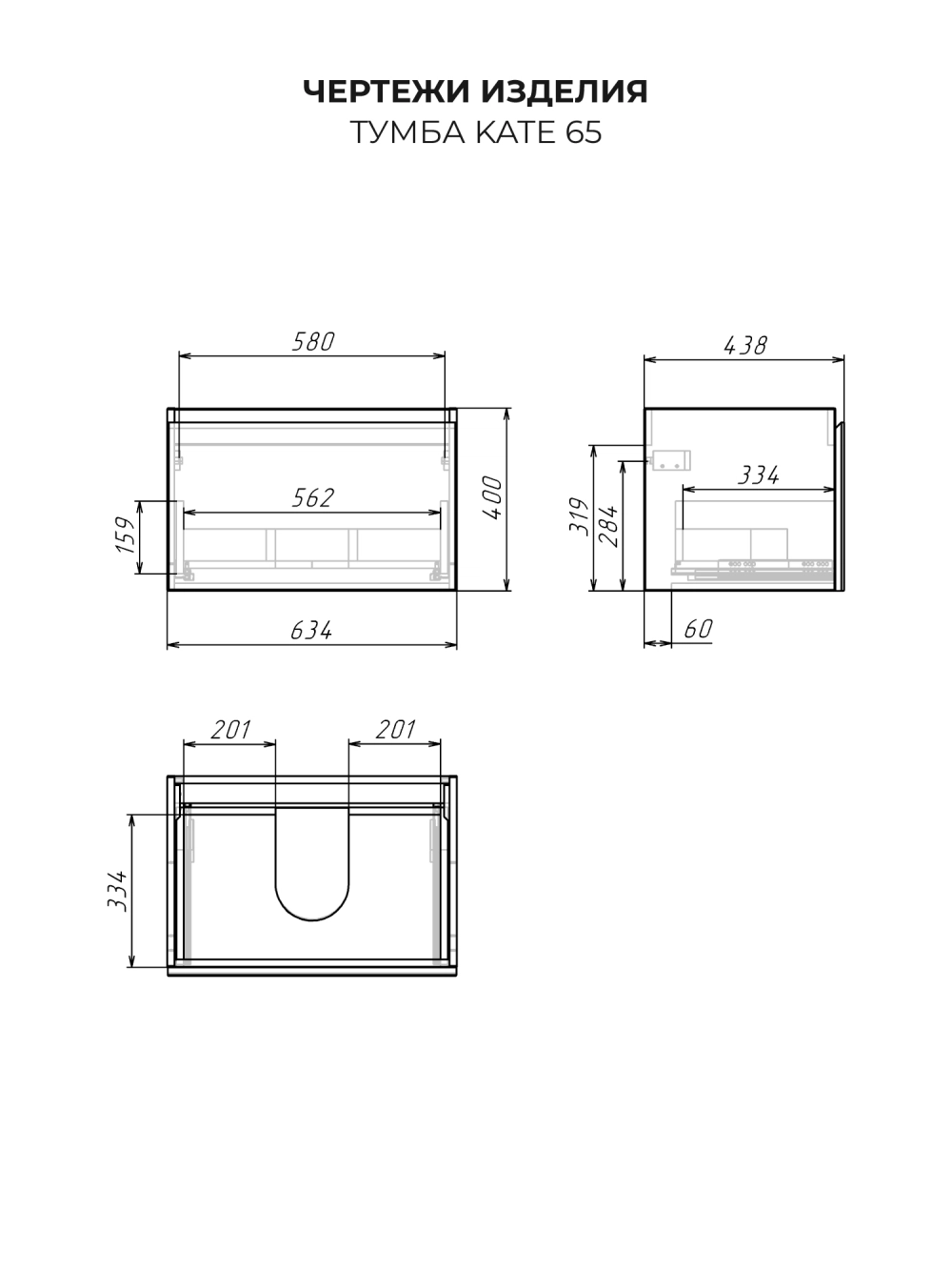 Тумба под раковину подвесная Итана Kate 65 с выдвижным ящиком Океания