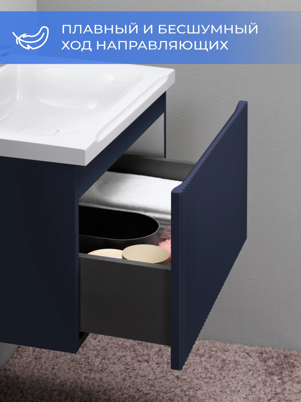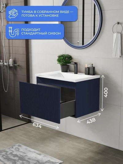 Подвесная тумба под раковину Итана Kate 65 станет идеальным дополнением для вашей ванной комнаты, сочетая в себе стильный дизайн и функциональность. Коллекция Kate - воплотила в себе тренд на фактурные фасады. Идеальный "рубчик" - простое и стильное дизайнерское решение для декорирования фасадов - эта мебель бесспорно станет украшением современной ванной комнаты. Элегантная подвесная конструкция позволяет максимально эффективно использовать пространство, создавая ощущение легкости и визуальной свободы в интерьере. Тумба изготовлена из высококачественных материалов, гарантируя долговечность и надежность эксплуатации. Удобные фрезерованные ручки, качественная фурнитура с доводчиками, вместительность - мы продумали все, чтобы тумба под раковину была не просто красивой, но еще и функциональной, приятной в использовании. Ее конструкция позволяет легко поддерживать порядок в ванной, ведь все мелочи будут аккуратно убраны. Стильный декор тумбы добавляет изюминку в общий дизайн, вписываясь в современные и классические интерьеры. Удобные выдвижные ящики обеспечивают простоту доступа к содержимому тумбы. Подвесная тумба для ванной Итана Kate 65 — это также безопасность и удобство в уборке, так как свободное пространство под ней позволяет легко очистить пол. Безупречное сочетание раковины с тумбой подчеркивает общий стиль вашей ванной комнаты, делая ее уютной и функциональной. Для точного выбора тумбочки в ванную комнату рекомендуем обратиться к схеме замеров, которая находится на фото в карточке товара, размеры изделия могут отличаться +/-1 см в связи со спецификой производства. Тумба для ванной доставляется в предварительно собранном виде, надежно упакована.