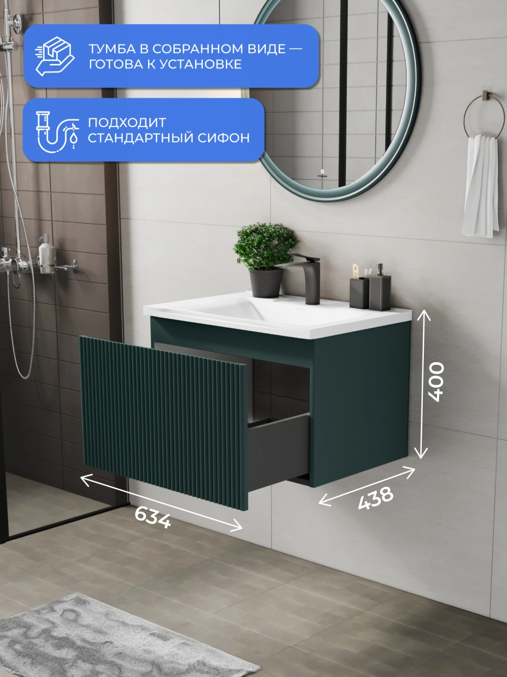 Подвесная тумба под раковину Итана Kate 65 станет идеальным дополнением для вашей ванной комнаты, сочетая в себе стильный дизайн и функциональность. Коллекция Kate - воплотила в себе тренд на фактурные фасады. Идеальный "рубчик" - простое и стильное дизайнерское решение для декорирования фасадов - эта мебель бесспорно станет украшением современной ванной комнаты. Элегантная подвесная конструкция позволяет максимально эффективно использовать пространство, создавая ощущение легкости и визуальной свободы в интерьере. Тумба изготовлена из высококачественных материалов, гарантируя долговечность и надежность эксплуатации. Удобные фрезерованные ручки, качественная фурнитура с доводчиками, вместительность - мы продумали все, чтобы тумба под раковину была не просто красивой, но еще и функциональной, приятной в использовании. Ее конструкция позволяет легко поддерживать порядок в ванной, ведь все мелочи будут аккуратно убраны. Стильный декор тумбы добавляет изюминку в общий дизайн, вписываясь в современные и классические интерьеры. Удобные выдвижные ящики обеспечивают простоту доступа к содержимому тумбы. Подвесная тумба для ванной Итана Kate 65 — это также безопасность и удобство в уборке, так как свободное пространство под ней позволяет легко очистить пол. Безупречное сочетание раковины с тумбой подчеркивает общий стиль вашей ванной комнаты, делая ее уютной и функциональной. Для точного выбора тумбочки в ванную комнату рекомендуем обратиться к схеме замеров, которая находится на фото в карточке товара, размеры изделия могут отличаться +/-1 см в связи со спецификой производства. Тумба для ванной доставляется в предварительно собранном виде, надежно упакована.