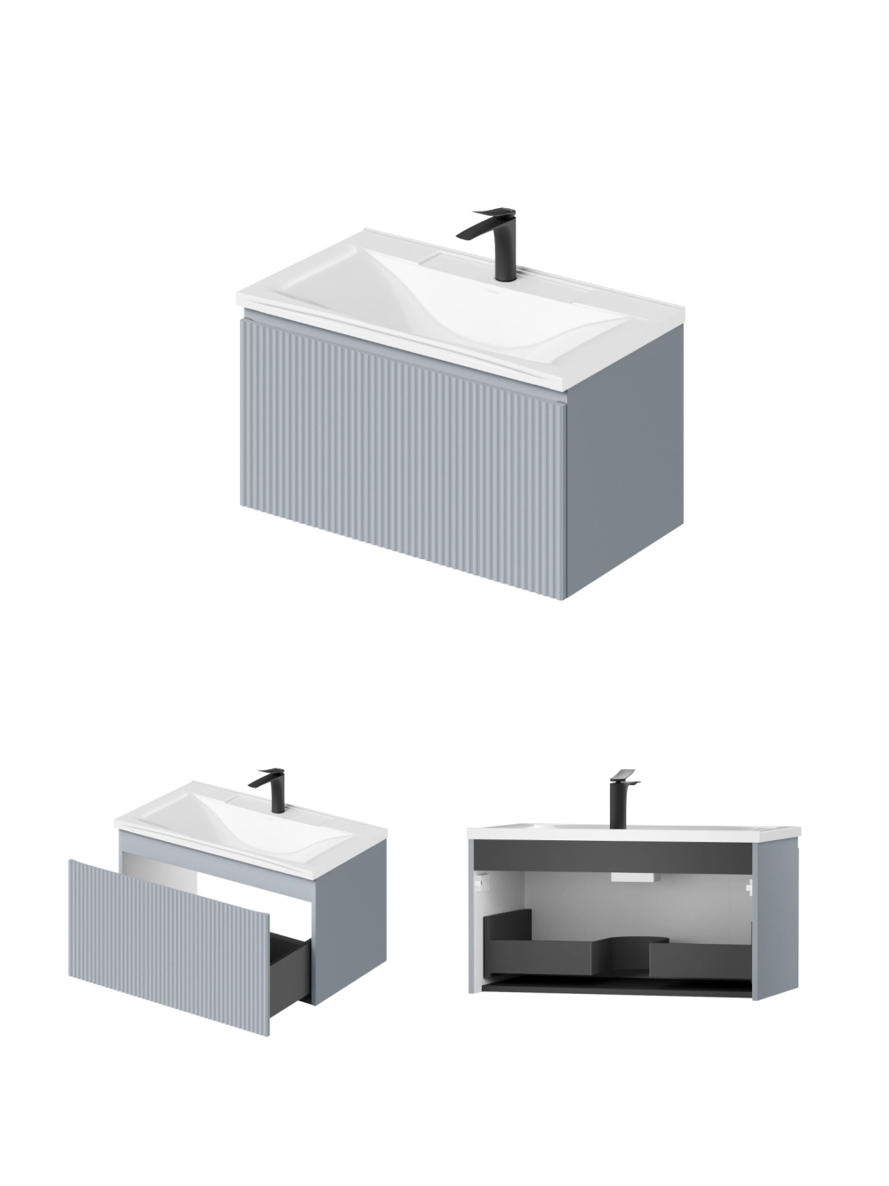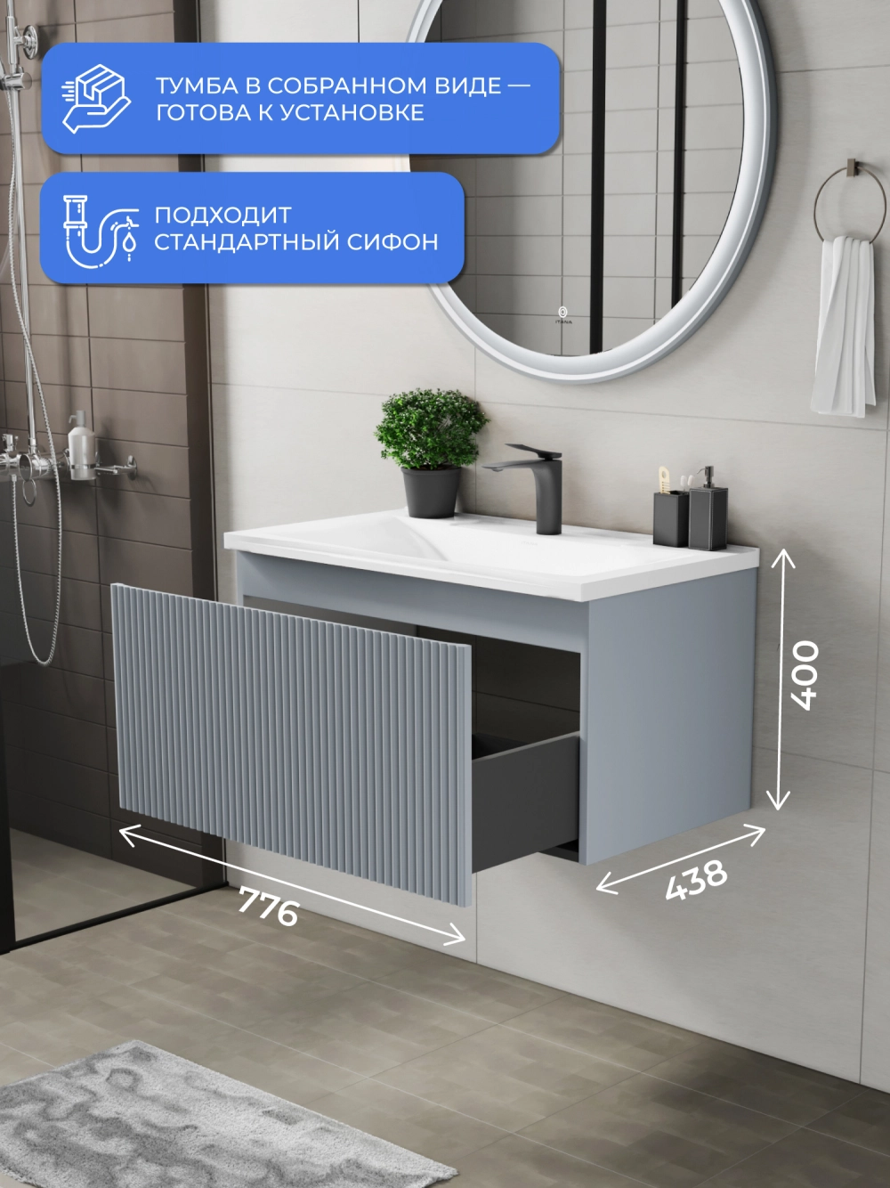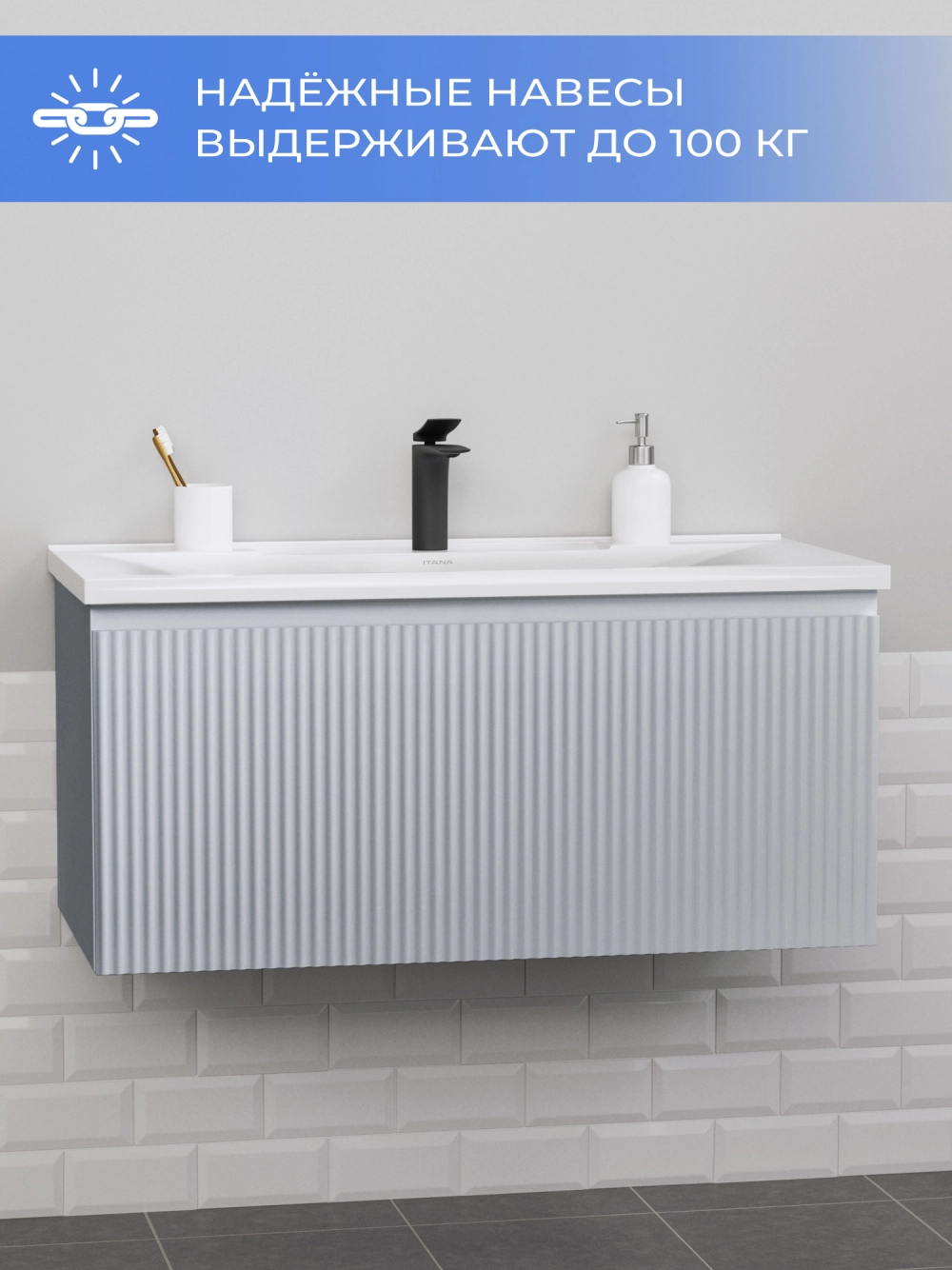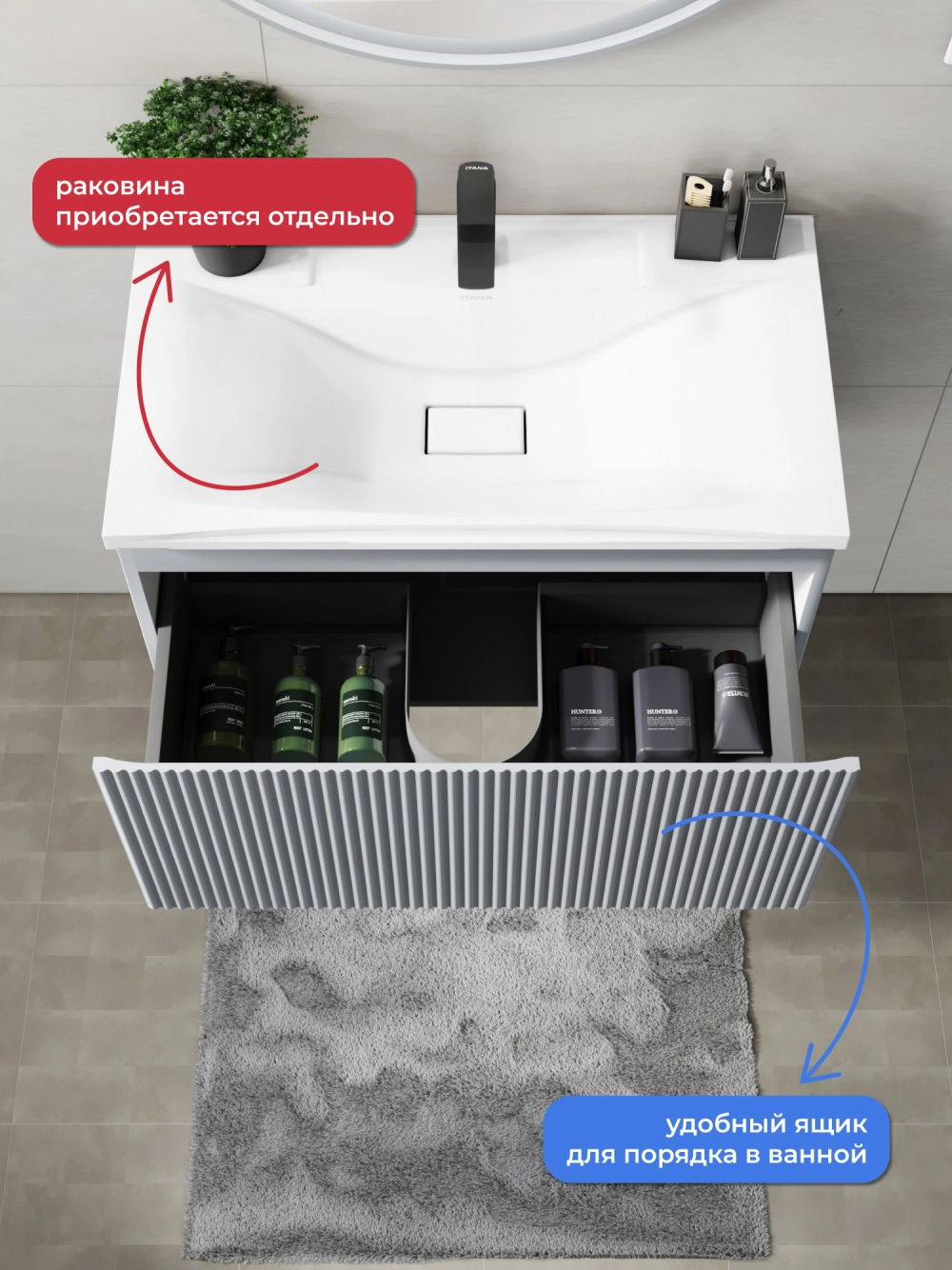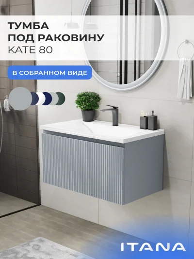 Подвесная тумба под раковину Итана Kate 80 станет идеальным дополнением для вашей ванной комнаты, сочетая в себе стильный дизайн и функциональность. Коллекция Kate - воплотила в себе тренд на фактурные фасады. Идеальный "рубчик" - простое и стильное дизайнерское решение для декорирования фасадов - эта мебель бесспорно станет украшением современной ванной комнаты. Элегантная подвесная конструкция позволяет максимально эффективно использовать пространство, создавая ощущение легкости и визуальной свободы в интерьере. Тумба изготовлена из высококачественных материалов, гарантируя долговечность и надежность эксплуатации. Удобные фрезерованные ручки, качественная фурнитура с доводчиками, вместительность - мы продумали все, чтобы тумба под раковину была не просто красивой, но еще и функциональной, приятной в использовании. Ее конструкция позволяет легко поддерживать порядок в ванной, ведь все мелочи будут аккуратно убраны. Стильный декор тумбы добавляет изюминку в общий дизайн, вписываясь в современные и классические интерьеры. Удобные выдвижные ящики обеспечивают простоту доступа к содержимому тумбы. Подвесная тумба для ванной Итана Kate 80 — это также безопасность и удобство в уборке, так как свободное пространство под ней позволяет легко очистить пол. Безупречное сочетание раковины с тумбой подчеркивает общий стиль вашей ванной комнаты, делая ее уютной и функциональной. Для точного выбора тумбочки в ванную комнату рекомендуем обратиться к схеме замеров, которая находится на фото в карточке товара, размеры изделия могут отличаться +/-1 см в связи со спецификой производства. Тумба для ванной доставляется в предварительно собранном виде, надежно упакована.