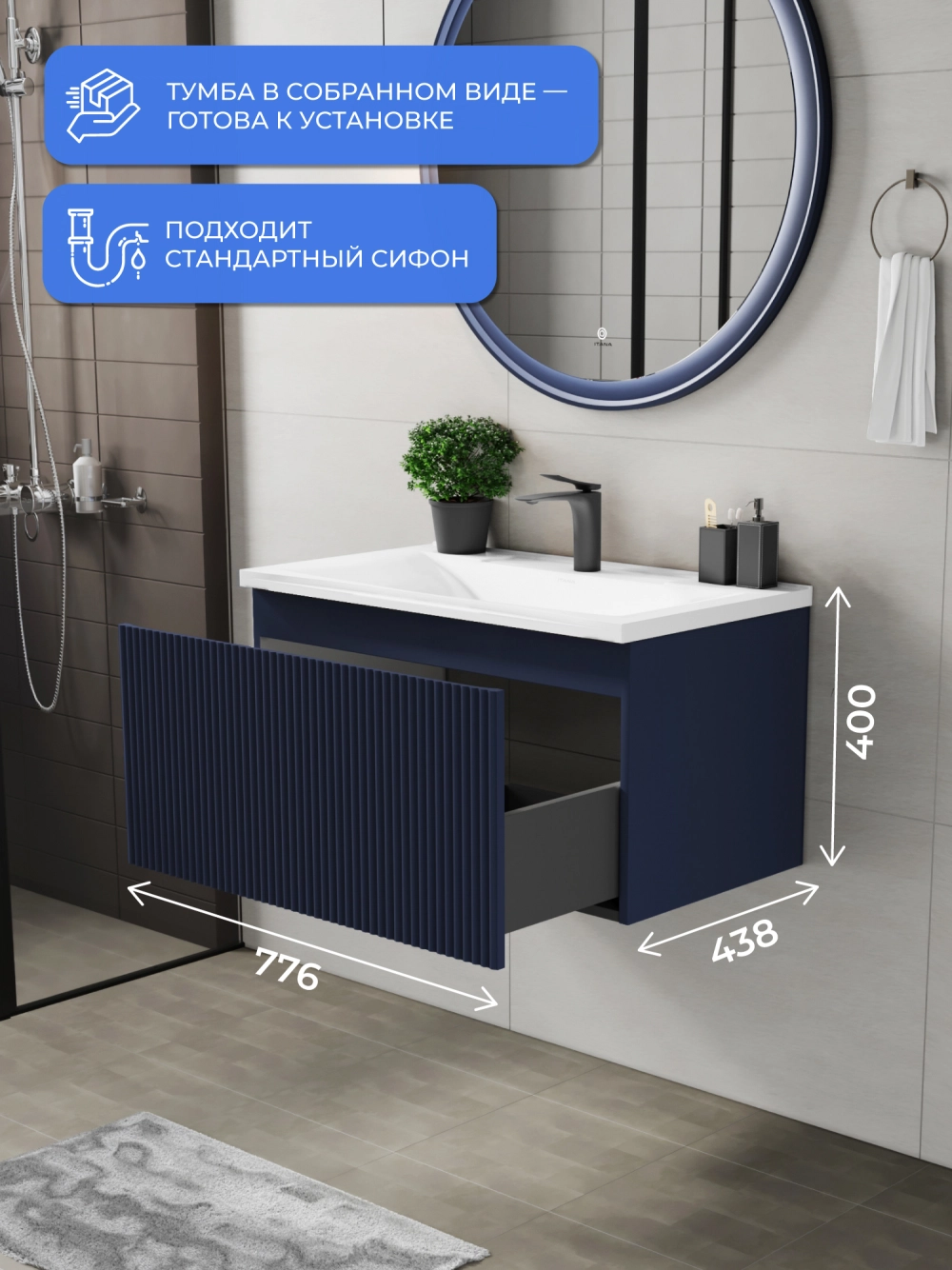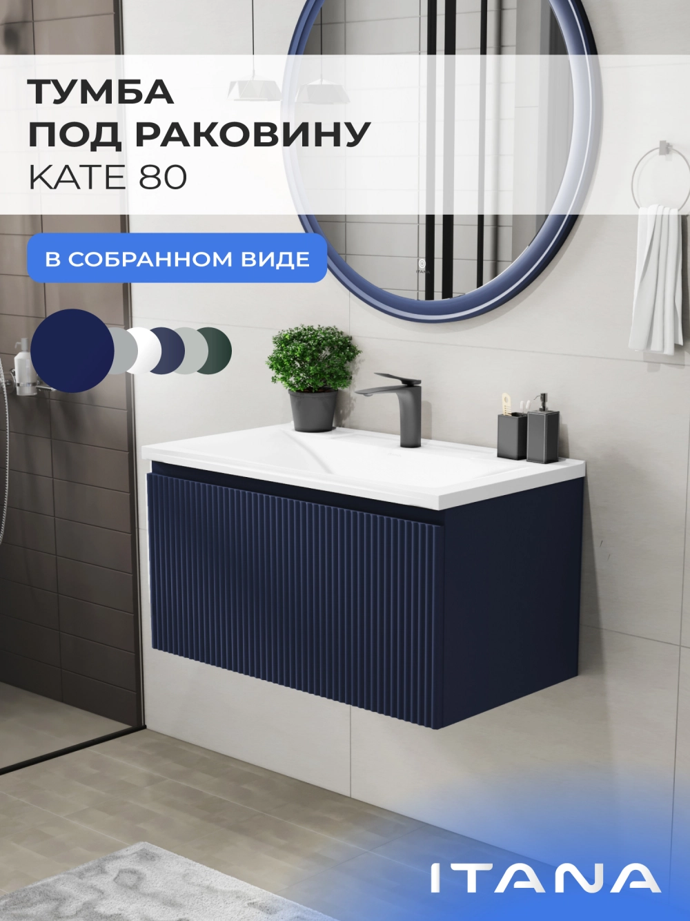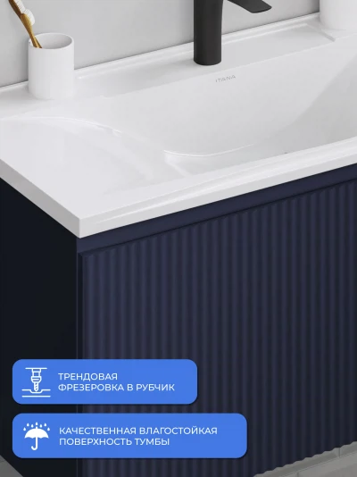 Подвесная тумба под раковину Итана Kate 80 станет идеальным дополнением для вашей ванной комнаты, сочетая в себе стильный дизайн и функциональность. Коллекция Kate - воплотила в себе тренд на фактурные фасады. Идеальный "рубчик" - простое и стильное дизайнерское решение для декорирования фасадов - эта мебель бесспорно станет украшением современной ванной комнаты. Элегантная подвесная конструкция позволяет максимально эффективно использовать пространство, создавая ощущение легкости и визуальной свободы в интерьере. Тумба изготовлена из высококачественных материалов, гарантируя долговечность и надежность эксплуатации. Удобные фрезерованные ручки, качественная фурнитура с доводчиками, вместительность - мы продумали все, чтобы тумба под раковину была не просто красивой, но еще и функциональной, приятной в использовании. Ее конструкция позволяет легко поддерживать порядок в ванной, ведь все мелочи будут аккуратно убраны. Стильный декор тумбы добавляет изюминку в общий дизайн, вписываясь в современные и классические интерьеры. Удобные выдвижные ящики обеспечивают простоту доступа к содержимому тумбы. Подвесная тумба для ванной Итана Kate 80 — это также безопасность и удобство в уборке, так как свободное пространство под ней позволяет легко очистить пол. Безупречное сочетание раковины с тумбой подчеркивает общий стиль вашей ванной комнаты, делая ее уютной и функциональной. Для точного выбора тумбочки в ванную комнату рекомендуем обратиться к схеме замеров, которая находится на фото в карточке товара, размеры изделия могут отличаться +/-1 см в связи со спецификой производства. Тумба для ванной доставляется в предварительно собранном виде, надежно упакована.