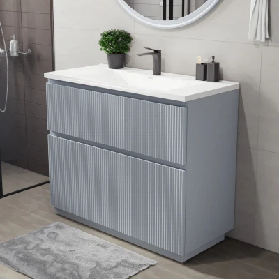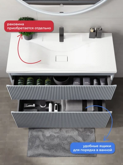 Напольная тумба под раковину Итана Кейт станет идеальным дополнением для вашей ванной комнаты, сочетая в себе стильный дизайн и функциональность. Коллекция Кейт - воплотила в себе тренд на фактурные фасады. Идеальный "рубчик" - простое и стильное дизайнерское решение для декорирования фасадов - эта мебель бесспорно станет украшением современной ванной комнаты. Тумба изготовлена из высококачественных материалов, гарантируя долговечность и надежность эксплуатации. Удобные фрезерованные ручки, качественная фурнитура с доводчиками, вместительность - мы продумали все, чтобы тумба была не просто красивой, но еще и функциональной, приятной в использовании. Ее конструкция позволяет легко поддерживать порядок в ванной, ведь все мелочи будут аккуратно убраны. Стильный декор тумбы под раковину добавляет изюминку в общий дизайн, вписываясь в современные и классические интерьеры. Удобные выдвижные ящики обеспечивают простоту доступа к содержимому тумбы.