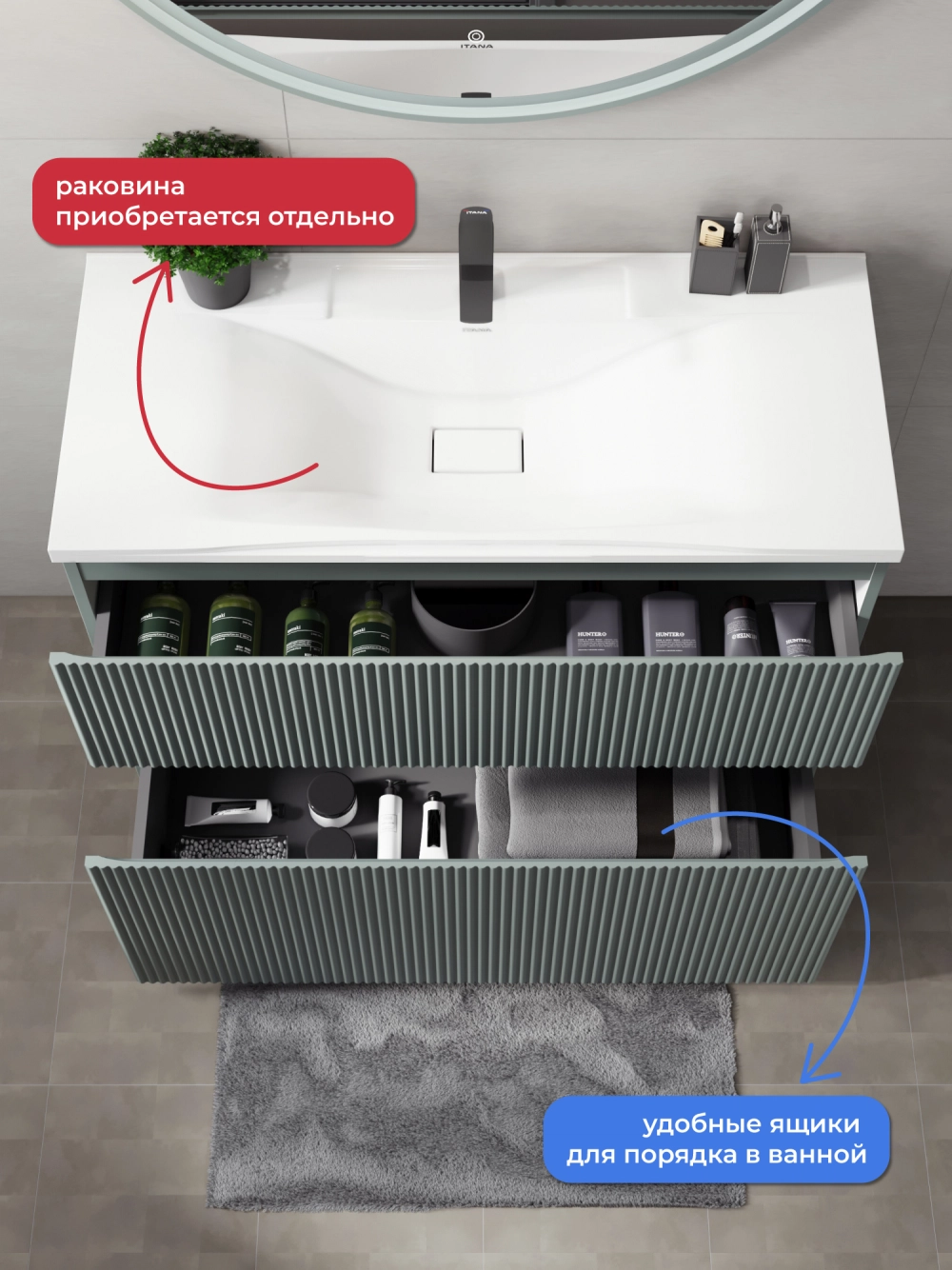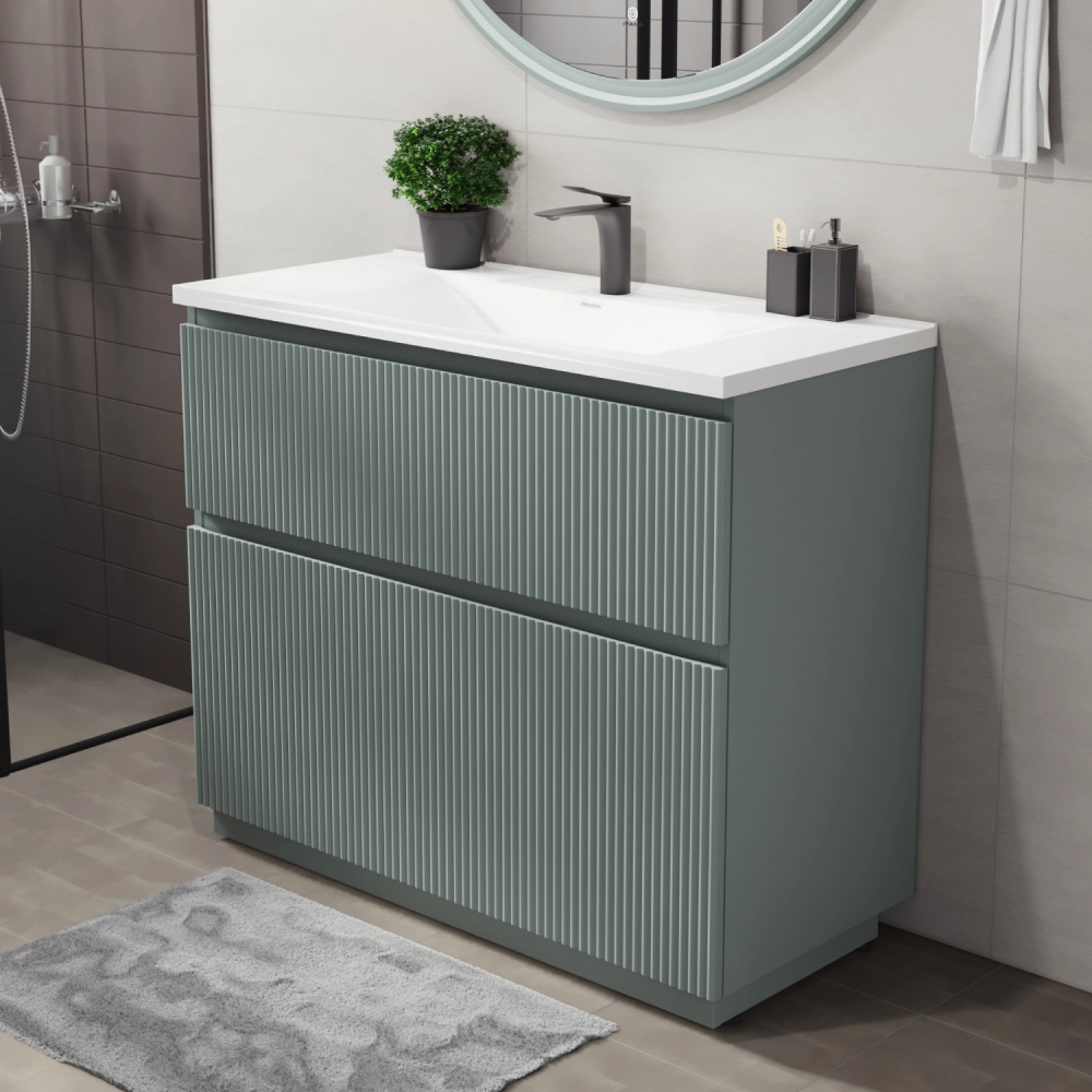 Напольная тумба под раковину Итана Кейт станет идеальным дополнением для вашей ванной комнаты, сочетая в себе стильный дизайн и функциональность. Коллекция Кейт - воплотила в себе тренд на фактурные фасады. Идеальный "рубчик" - простое и стильное дизайнерское решение для декорирования фасадов - эта мебель бесспорно станет украшением современной ванной комнаты. Тумба изготовлена из высококачественных материалов, гарантируя долговечность и надежность эксплуатации. Удобные фрезерованные ручки, качественная фурнитура с доводчиками, вместительность - мы продумали все, чтобы тумба была не просто красивой, но еще и функциональной, приятной в использовании. Ее конструкция позволяет легко поддерживать порядок в ванной, ведь все мелочи будут аккуратно убраны. Стильный декор тумбы под раковину добавляет изюминку в общий дизайн, вписываясь в современные и классические интерьеры. Удобные выдвижные ящики обеспечивают простоту доступа к содержимому тумбы.