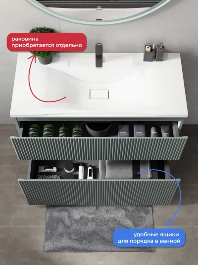 Тумба под раковину подвесная ИТАНА Кейт 100 с выдвижными ящиками Светло-зеленый