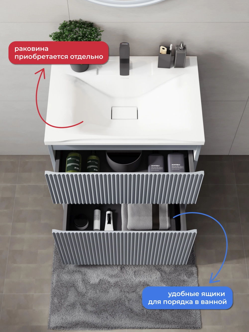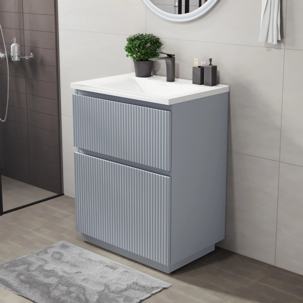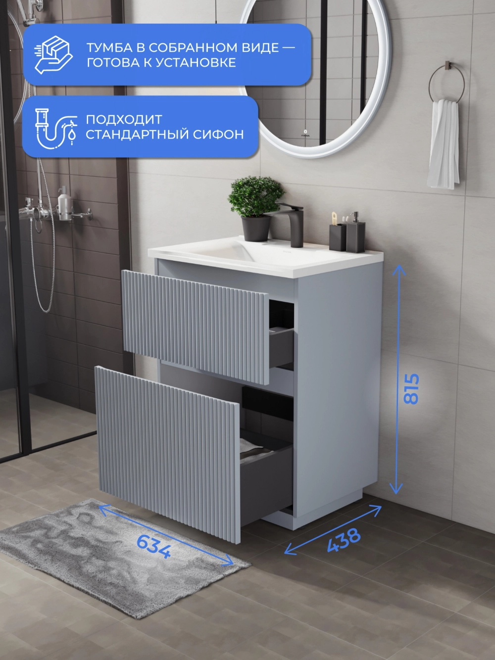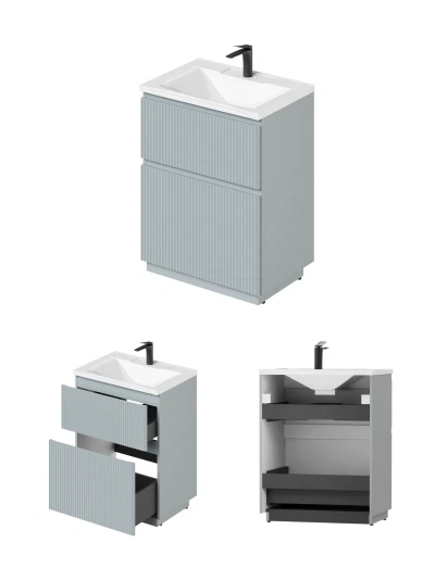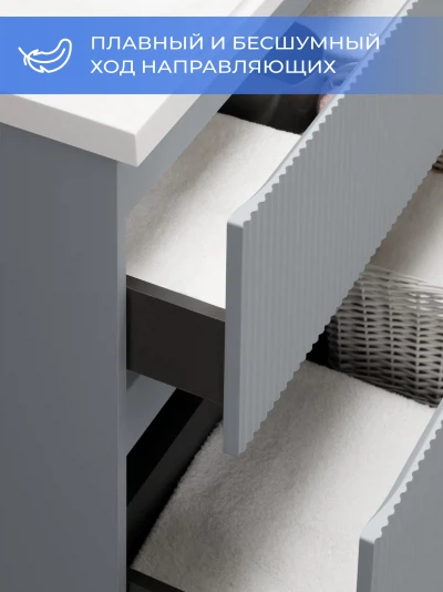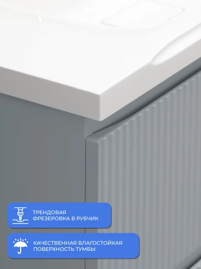 Напольная тумба под раковину Итана Кейт станет идеальным дополнением для вашей ванной комнаты, сочетая в себе стильный дизайн и функциональность. Коллекция Кейт - воплотила в себе тренд на фактурные фасады. Идеальный "рубчик" - простое и стильное дизайнерское решение для декорирования фасадов - эта мебель бесспорно станет украшением современной ванной комнаты. Тумба изготовлена из высококачественных материалов, гарантируя долговечность и надежность эксплуатации. Удобные фрезерованные ручки, качественная фурнитура с доводчиками, вместительность - мы продумали все, чтобы тумба была не просто красивой, но еще и функциональной, приятной в использовании. Ее конструкция позволяет легко поддерживать порядок в ванной, ведь все мелочи будут аккуратно убраны. Стильный декор тумбы под раковину добавляет изюминку в общий дизайн, вписываясь в современные и классические интерьеры. Удобные выдвижные ящики обеспечивают простоту доступа к содержимому тумбы.