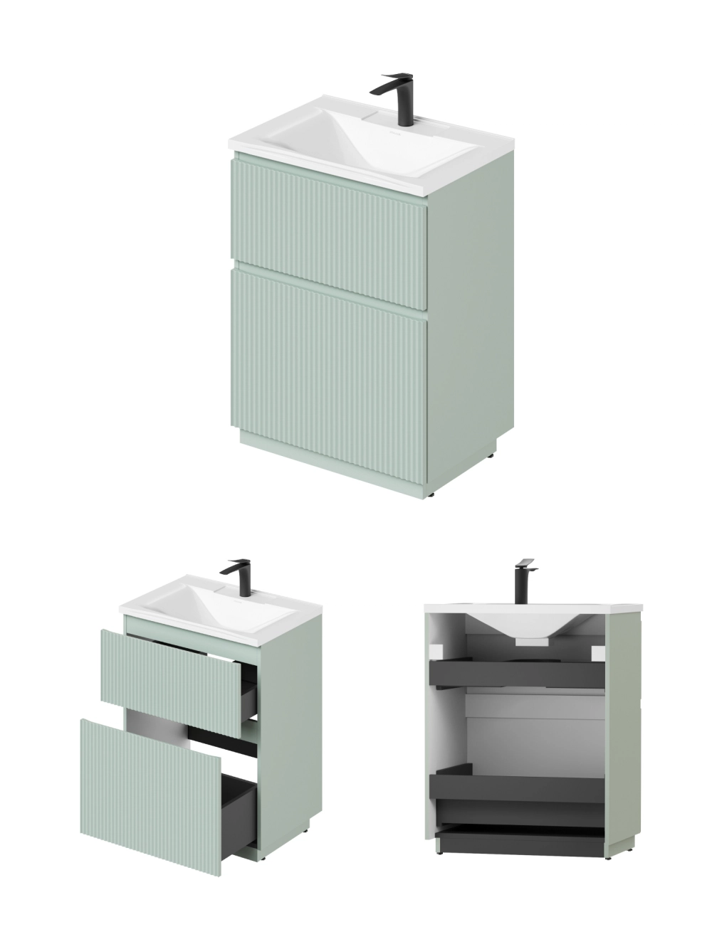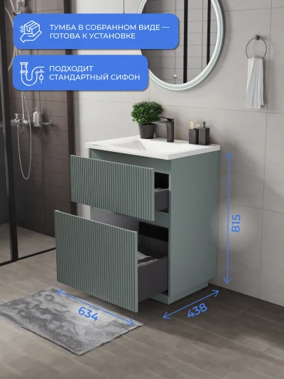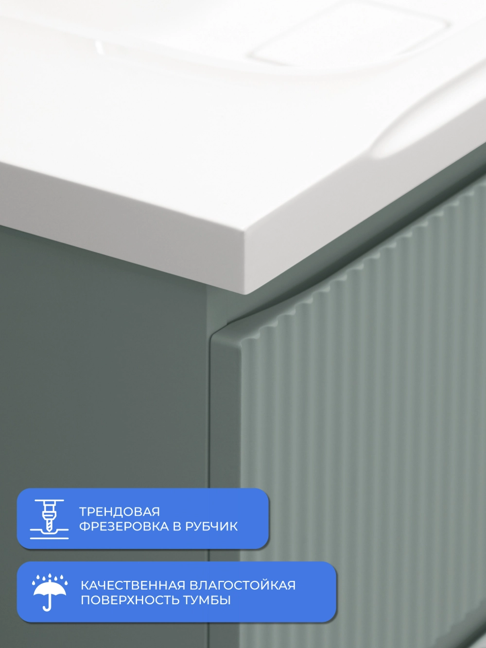 Тумба под раковину подвесная ИТАНА Кейт 65 с выдвижными ящиками Светло-зеленый