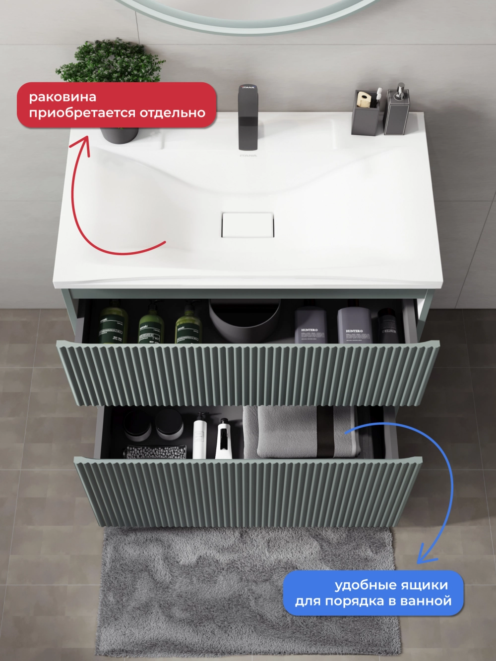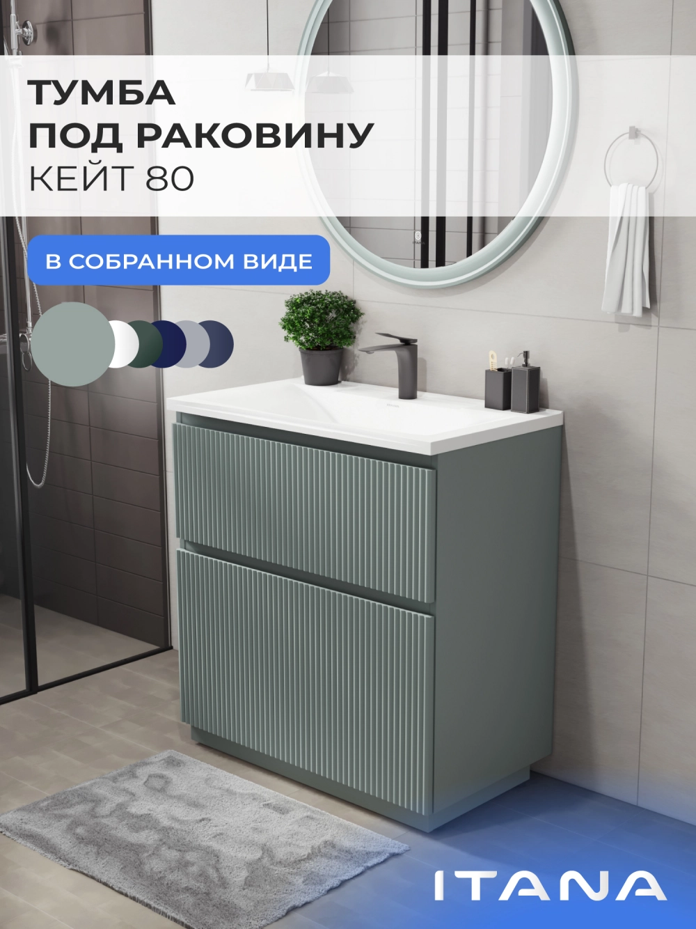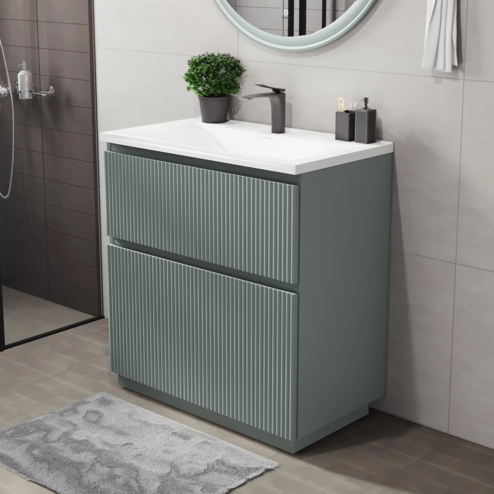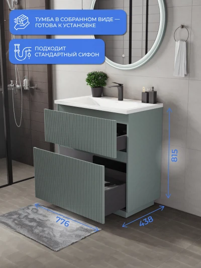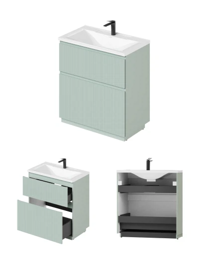 Напольная тумба под раковину Итана Кейт станет идеальным дополнением для вашей ванной комнаты, сочетая в себе стильный дизайн и функциональность. Коллекция Кейт - воплотила в себе тренд на фактурные фасады. Идеальный "рубчик" - простое и стильное дизайнерское решение для декорирования фасадов - эта мебель бесспорно станет украшением современной ванной комнаты. Тумба изготовлена из высококачественных материалов, гарантируя долговечность и надежность эксплуатации. Удобные фрезерованные ручки, качественная фурнитура с доводчиками, вместительность - мы продумали все, чтобы тумба была не просто красивой, но еще и функциональной, приятной в использовании. Ее конструкция позволяет легко поддерживать порядок в ванной, ведь все мелочи будут аккуратно убраны. Стильный декор тумбы под раковину добавляет изюминку в общий дизайн, вписываясь в современные и классические интерьеры. Удобные выдвижные ящики обеспечивают простоту доступа к содержимому тумбы.