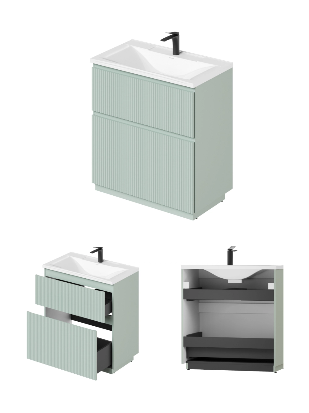 Тумба под раковину подвесная ИТАНА Кейт 80 с выдвижными ящиками Светло-зеленый