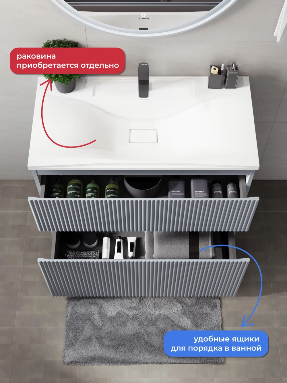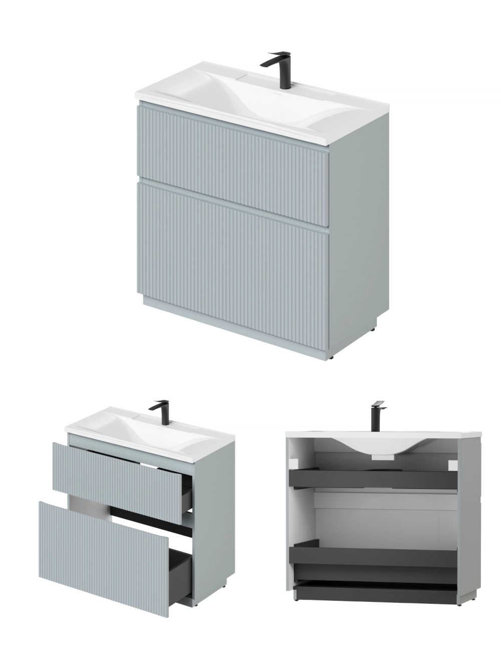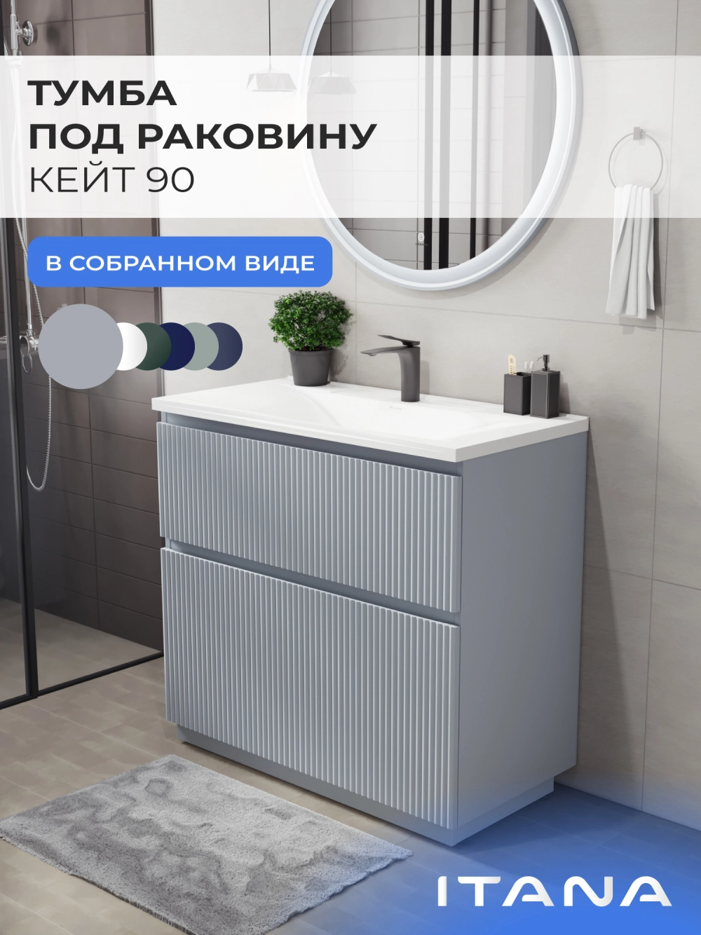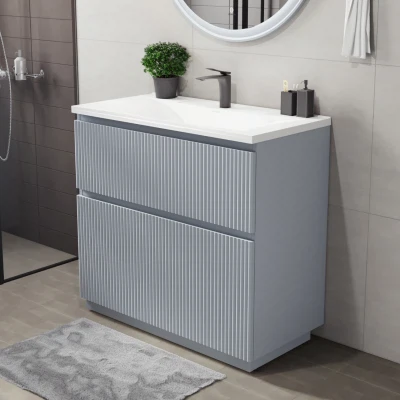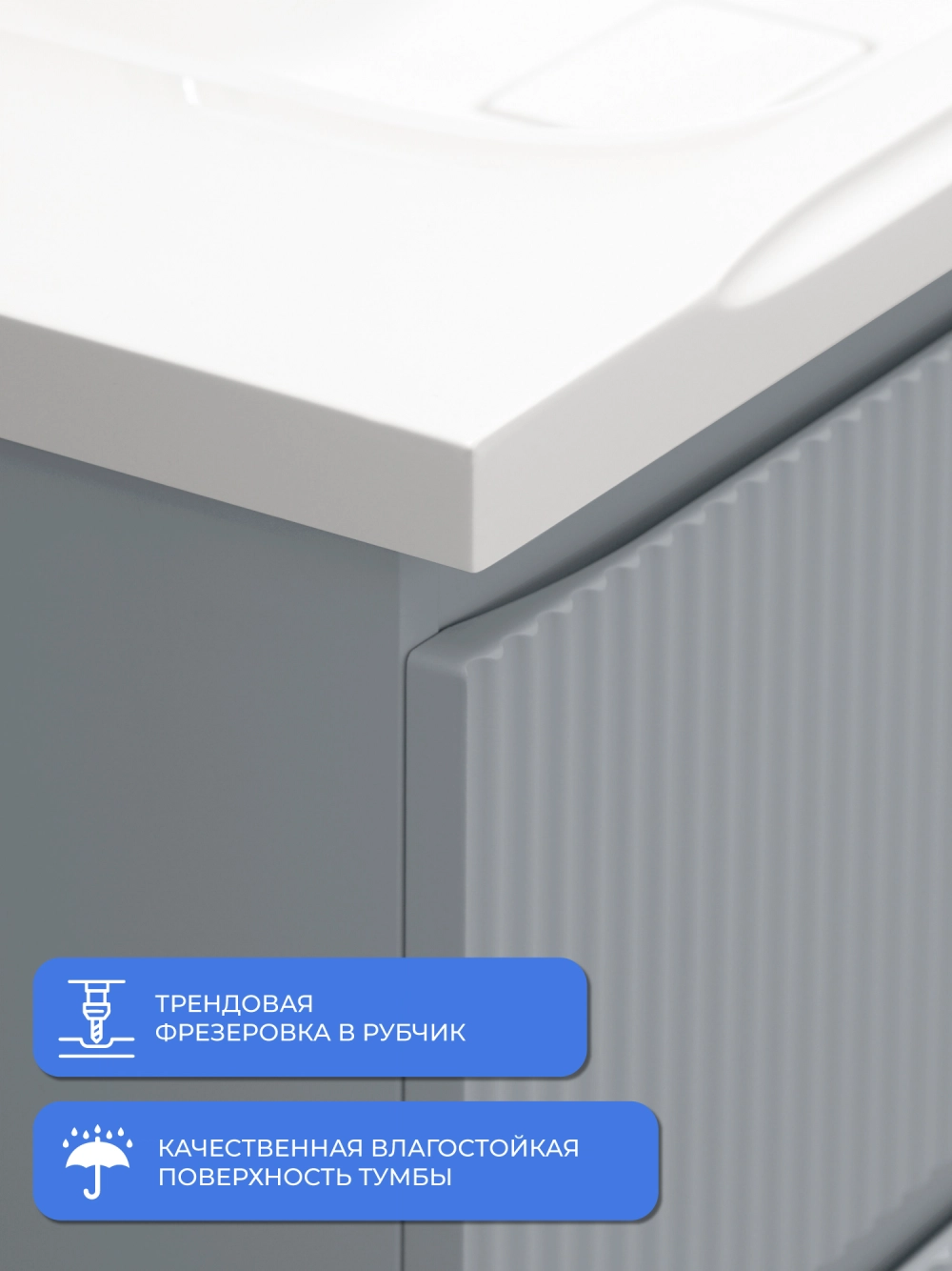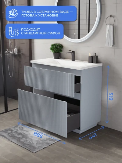 Напольная тумба под раковину Итана Кейт станет идеальным дополнением для вашей ванной комнаты, сочетая в себе стильный дизайн и функциональность. Коллекция Кейт - воплотила в себе тренд на фактурные фасады. Идеальный "рубчик" - простое и стильное дизайнерское решение для декорирования фасадов - эта мебель бесспорно станет украшением современной ванной комнаты. Тумба изготовлена из высококачественных материалов, гарантируя долговечность и надежность эксплуатации. Удобные фрезерованные ручки, качественная фурнитура с доводчиками, вместительность - мы продумали все, чтобы тумба была не просто красивой, но еще и функциональной, приятной в использовании. Ее конструкция позволяет легко поддерживать порядок в ванной, ведь все мелочи будут аккуратно убраны. Стильный декор тумбы под раковину добавляет изюминку в общий дизайн, вписываясь в современные и классические интерьеры. Удобные выдвижные ящики обеспечивают простоту доступа к содержимому тумбы.