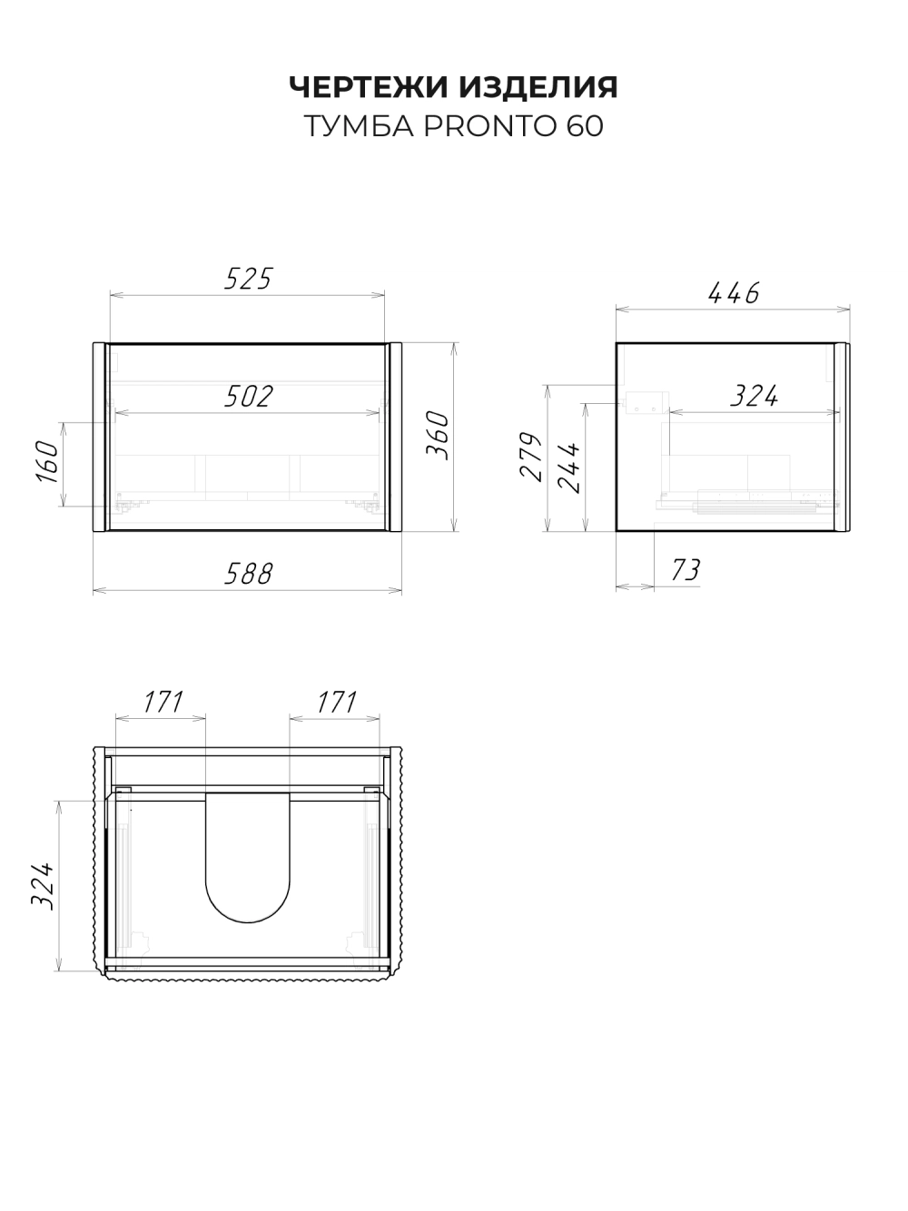 Тумба под раковину подвесная Итана Pronto 60 с выдвижным ящиком Бланж